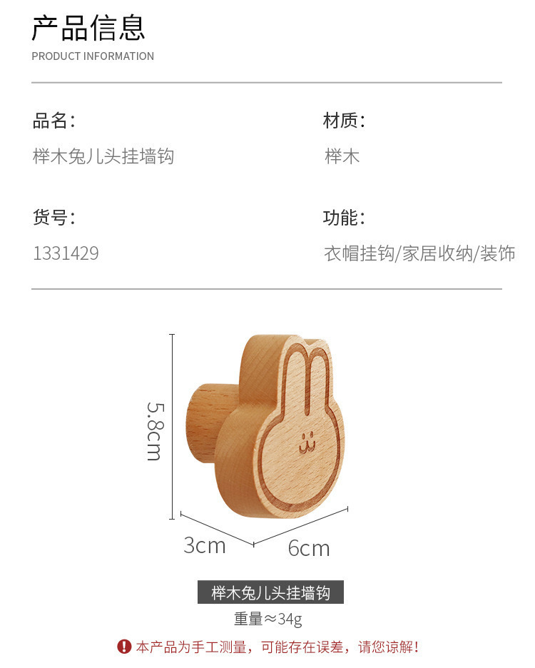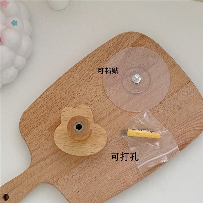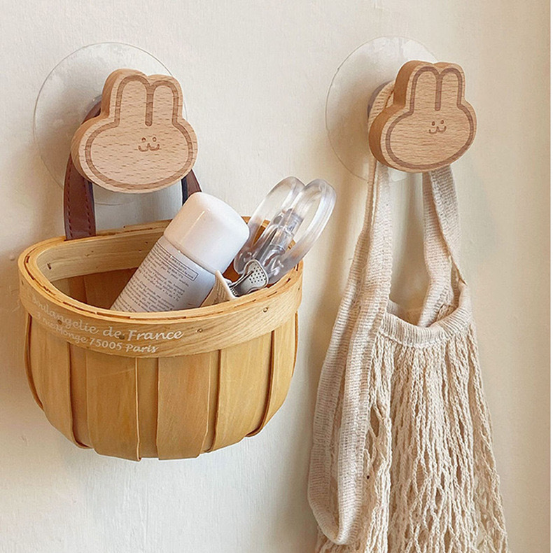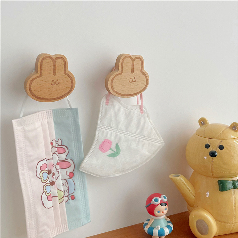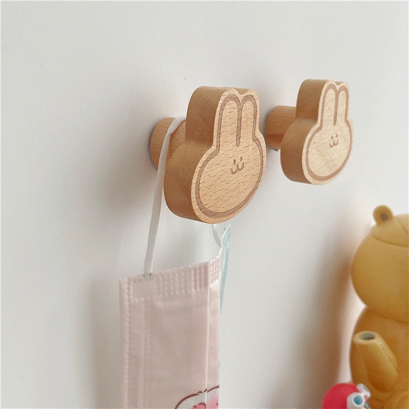 Ins木製のフックは穴を開けないで、強力な接着剤の木製のシンプルな漫画のウサギの服のフック両用です。