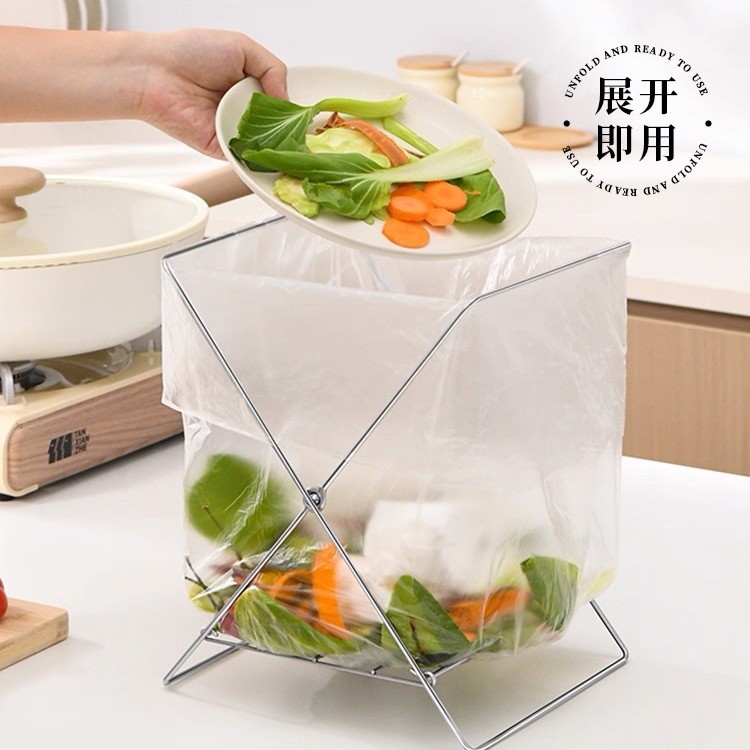 日本垃圾架厨房不锈钢折叠垃圾袋支架家用台面塑料袋固定器支撑架