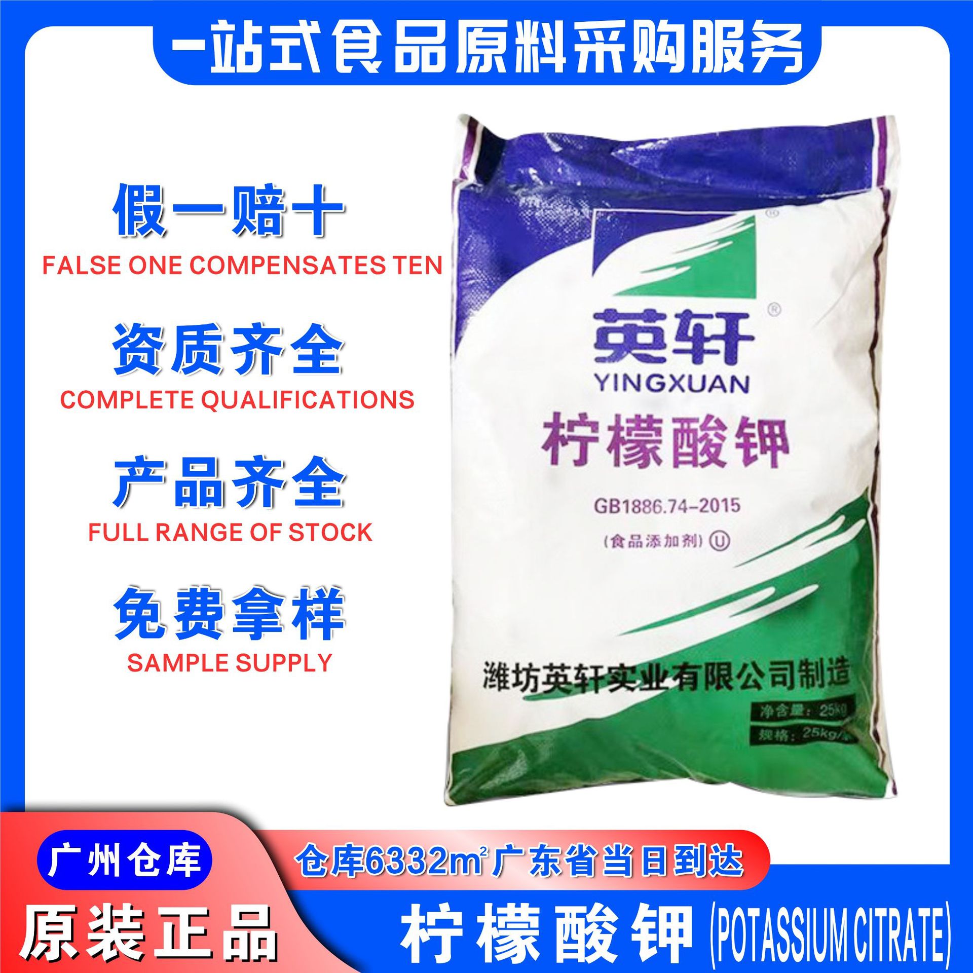 英轩柠檬酸钾PH缓冲剂螯合剂广州发货酸度调节剂食品级柠檬酸钾