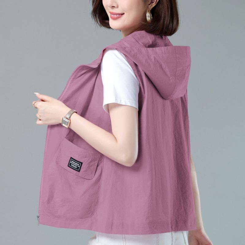 春夏季连帽防晒马甲女薄款透气中年妈妈洋气大码马夹