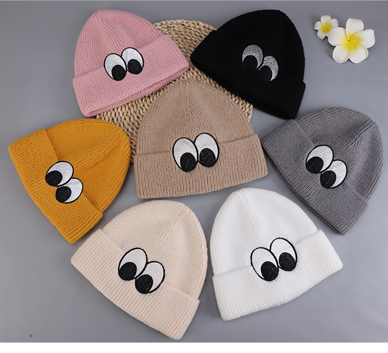 新品秋冬レディースニット帽防寒毛糸帽子ファッション刺繍目アウトドアスポーツフード卸売
