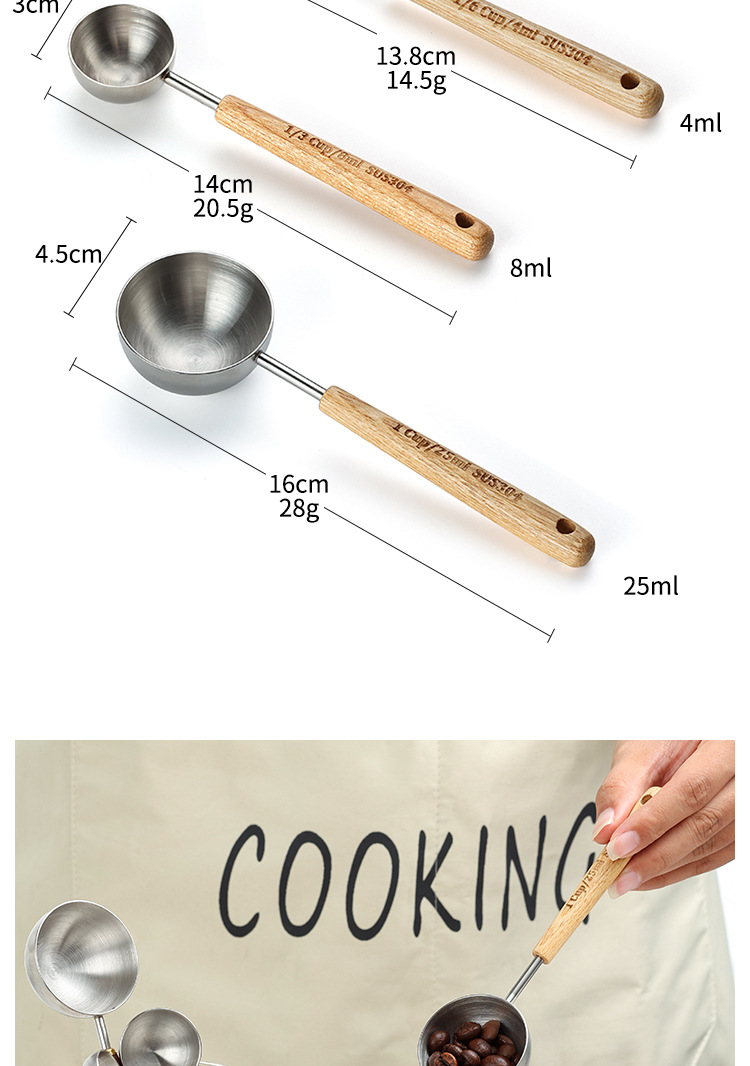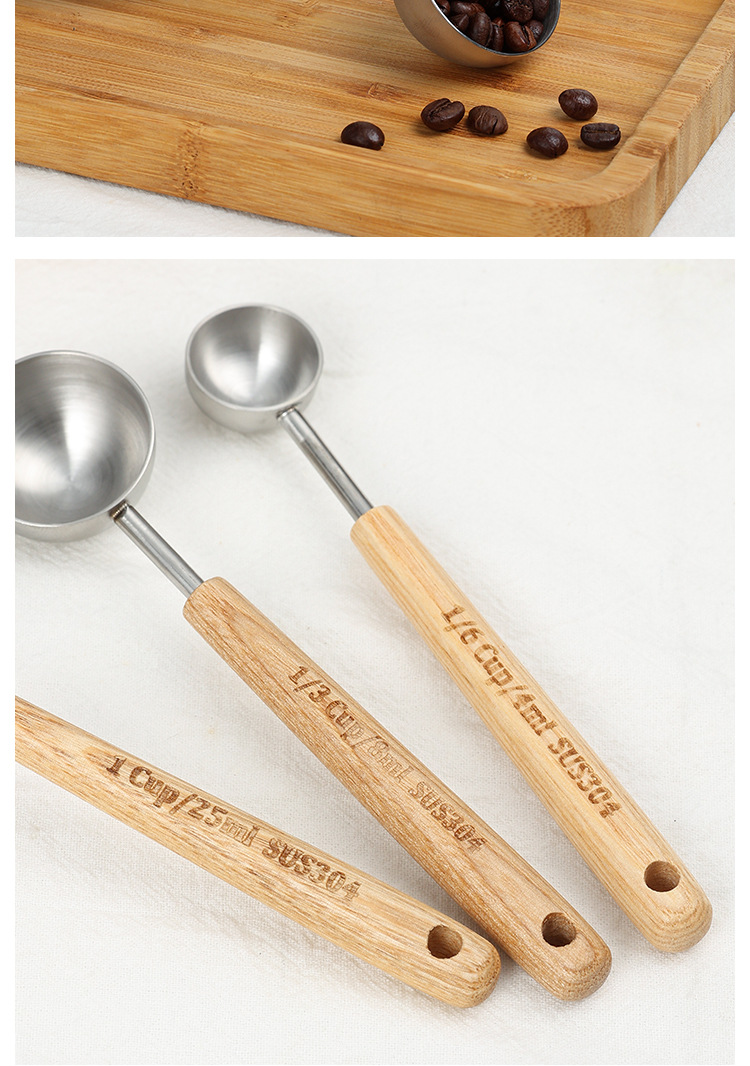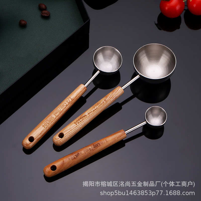 クロスボーダー人気304ステンレススケール測定スプーンクリエイティブ木柄コーヒー粉粉ミルク測定スプーン家庭用ベーキングツール