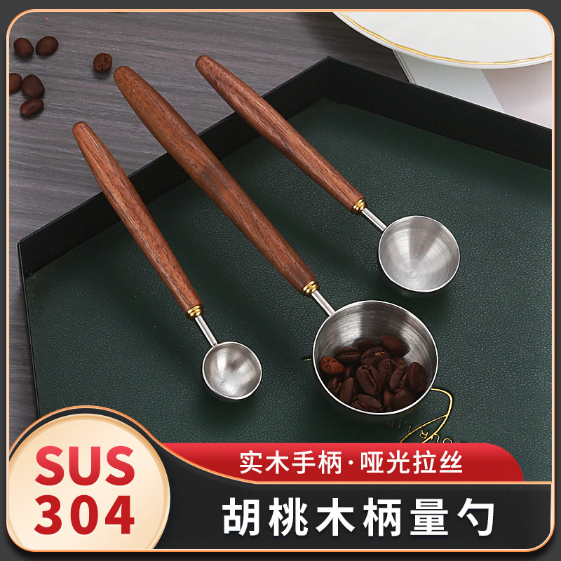 304ステンレス計量スプーンコーヒー計量スプーン胡桃木ハンドルスプーン台所焙煎コーヒー豆スプーン