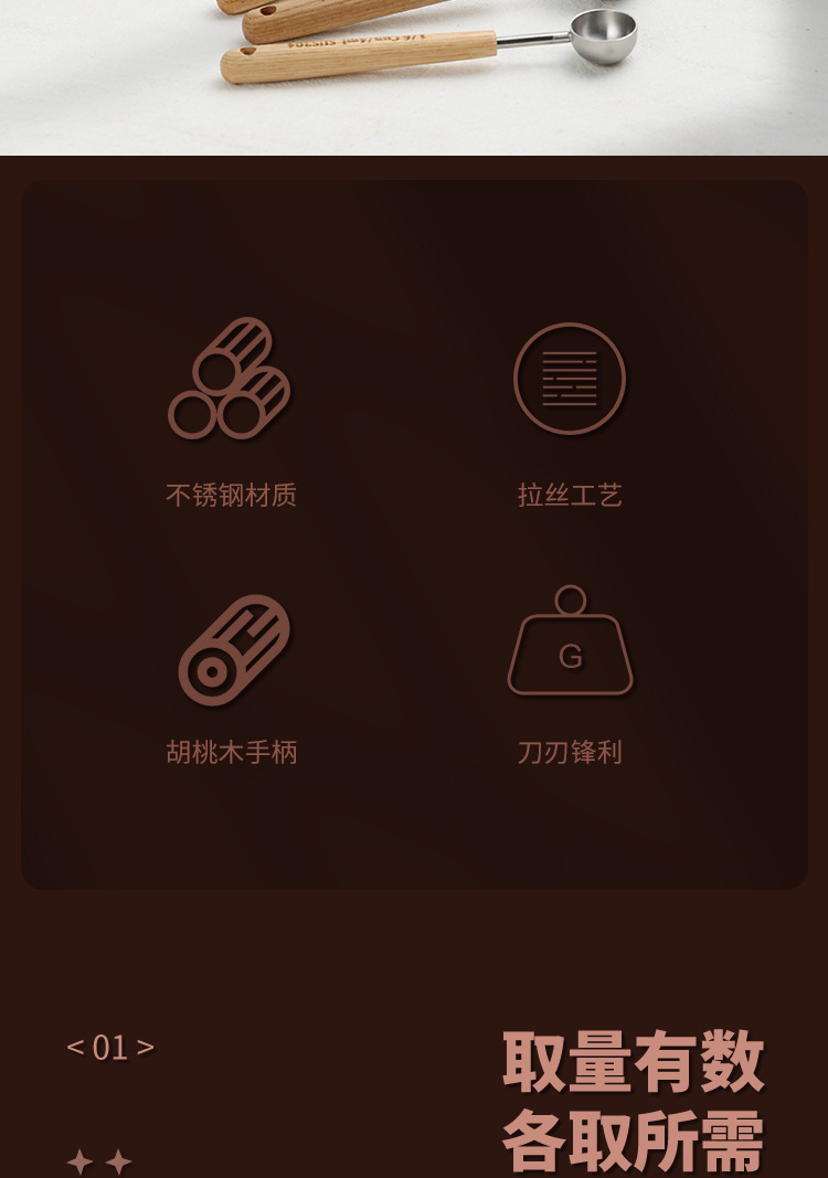 304不锈钢咖啡勺胡桃木长柄咖啡粉奶粉计量勺子厨房烘焙工具量勺