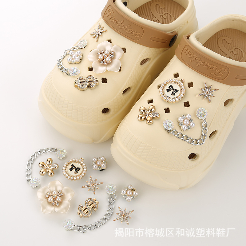 クロスボーダーはクロスの穴の靴に合わせて銀色の水晶のダイヤモンドのチェーンを飾って、取り外し可能なDIYの靴のバックルの部品を飾ります。