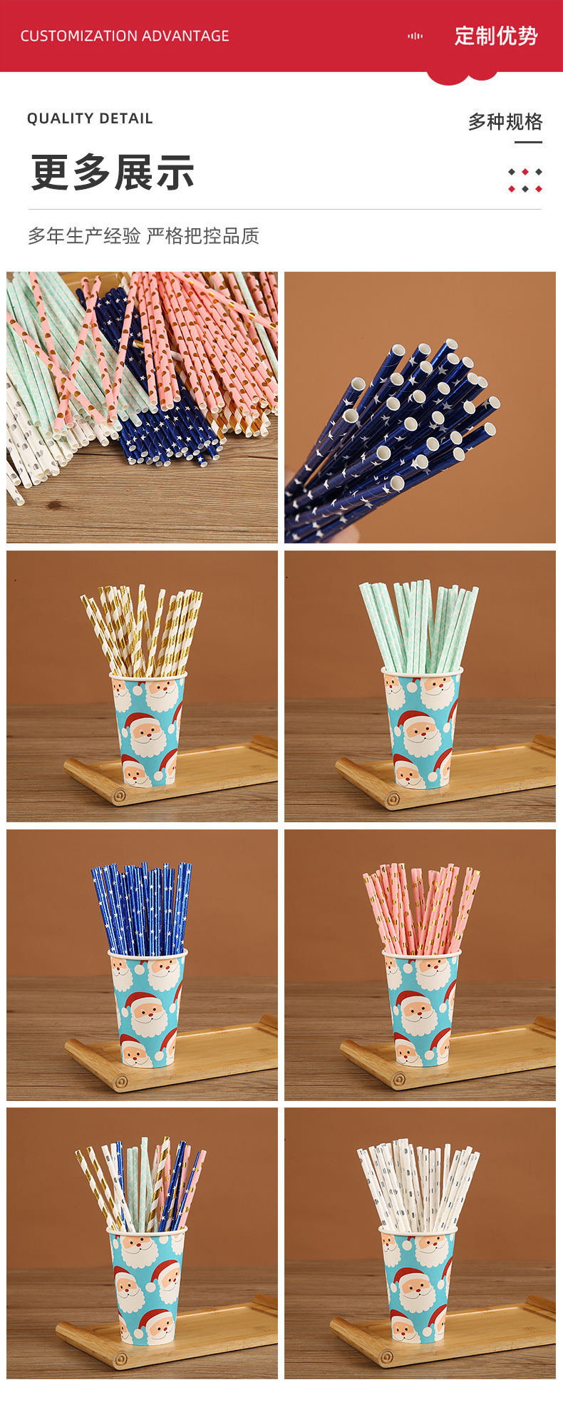 カラーストロー分解性使い捨て紙ストレートストロー創意パーティー飲料管デザート台装飾道具卸売り