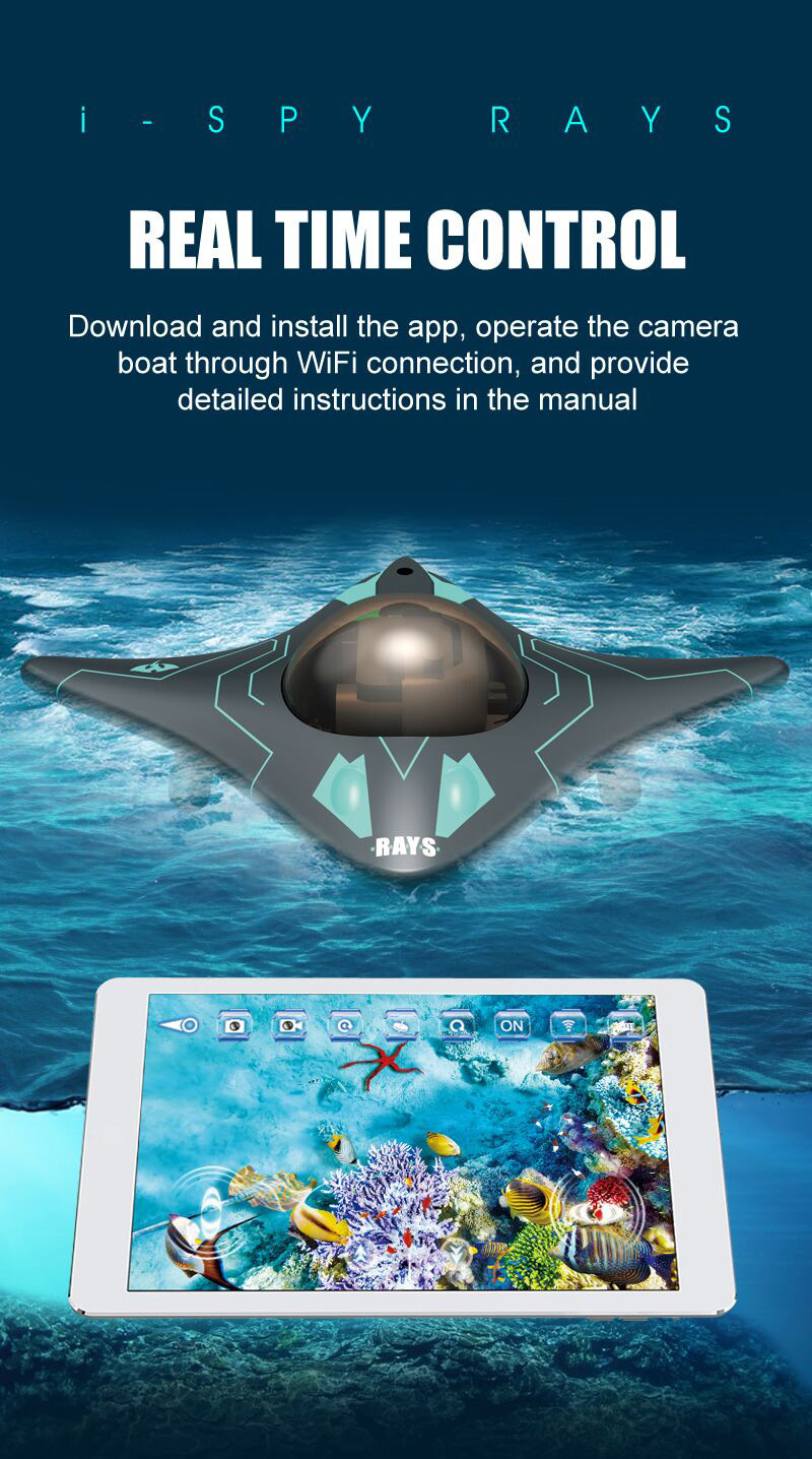 产品名称:mini wifi遥控六通实时传输水下摄像船