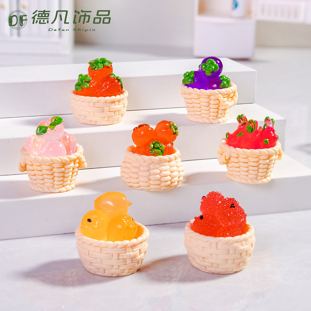 果物のかごを食べて遊んで創意的な微景観の子供の家の造景の樹脂の工芸品の小さい置物のdiy樹脂の部品を遊びます。