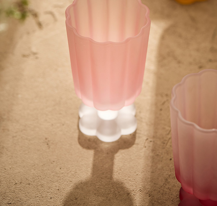 メーカー花びらの小さいコップのデザートの杯の高級感のオート麦の杯のグラスの女性の高い顔の価値の牛乳の杯のジュースの杯