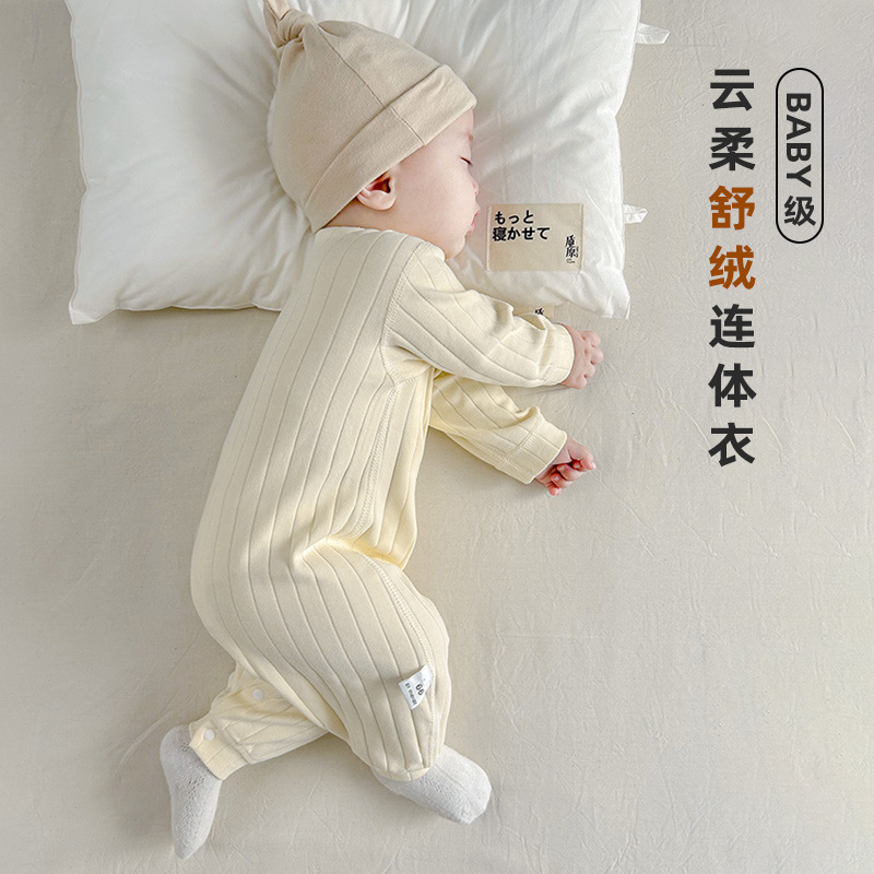 赤ちゃんのワンピース男女赤ちゃんの保温無骨パジャマ舒毛綿肌着下着冬春と秋の服装