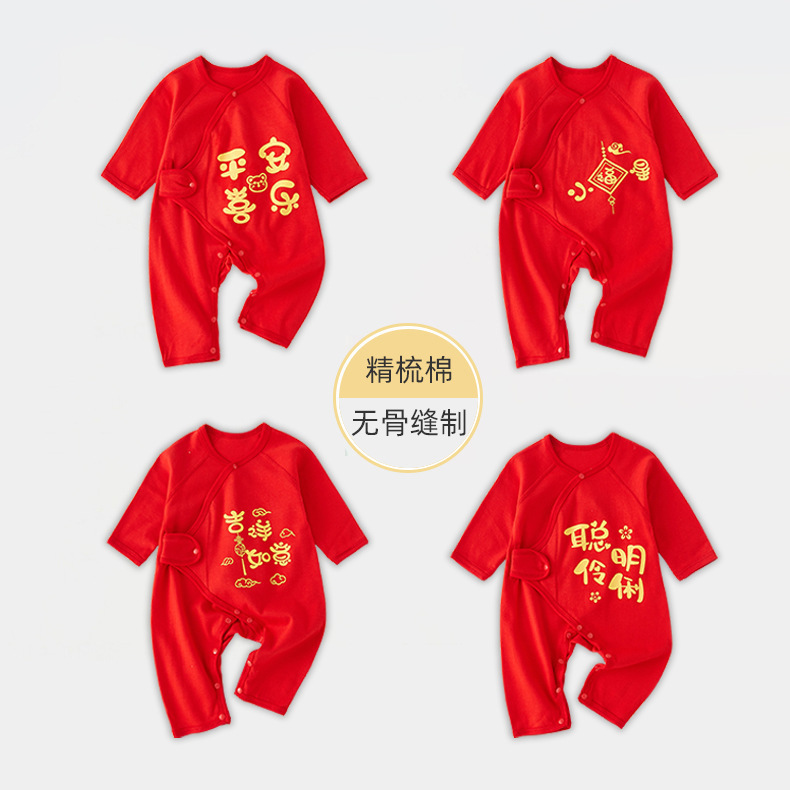 新生児純綿服赤ちゃんの赤いお祝い新年満月服連体服春秋拝年服秋