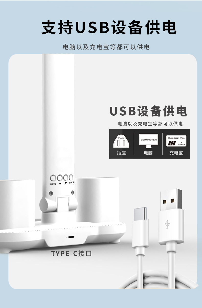 双头护眼台灯学生宿舍卧室专用学习台灯LED充插两用大容量阅读灯