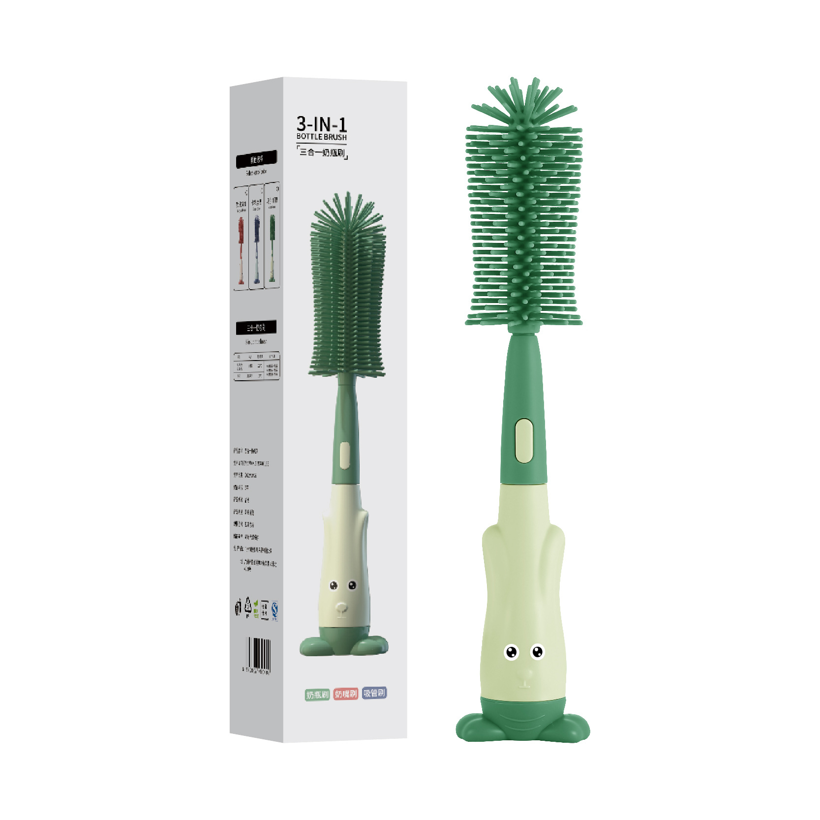 赤ちゃんの子供の三合一のシリカゲルの哺乳瓶のブラシの乳首のブラシのストローのブラシのスポンジのナイロンのブラシは包装を含みます。