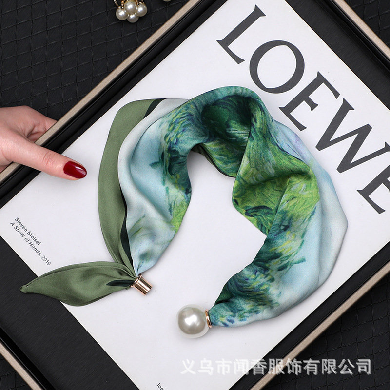 材质:双面印花贝珠磁吸扣项链三角围巾