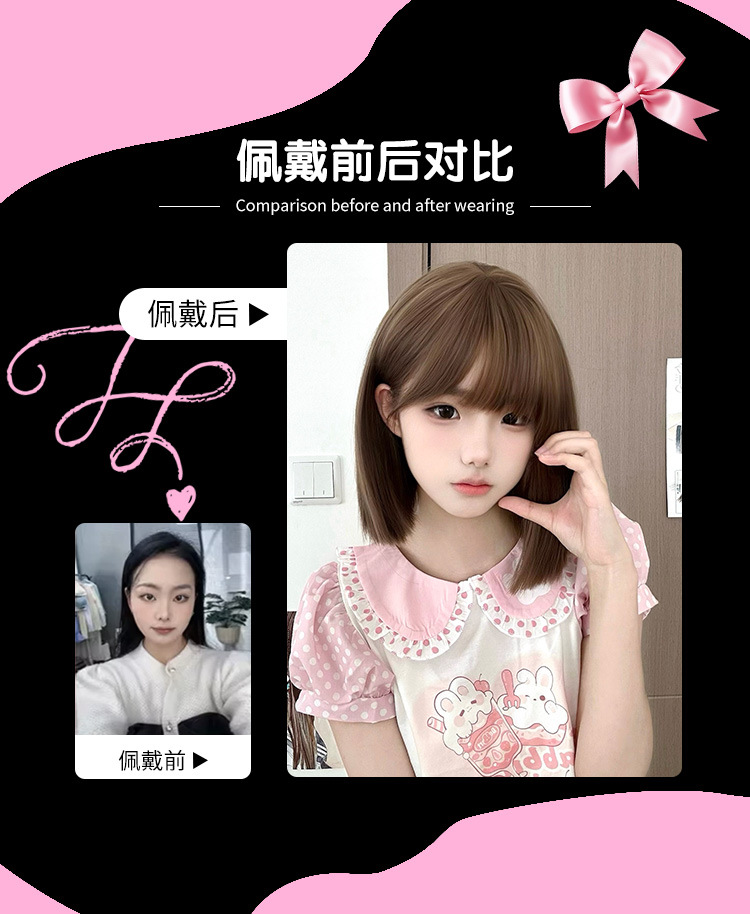 ウィッグ女性フルヘッドカバー短髪学生日常シミュレーションロリータcosプリンセスウィッグセット前髪