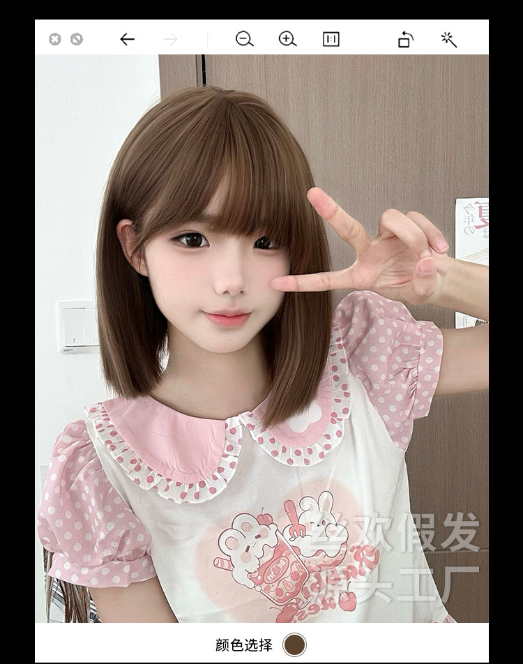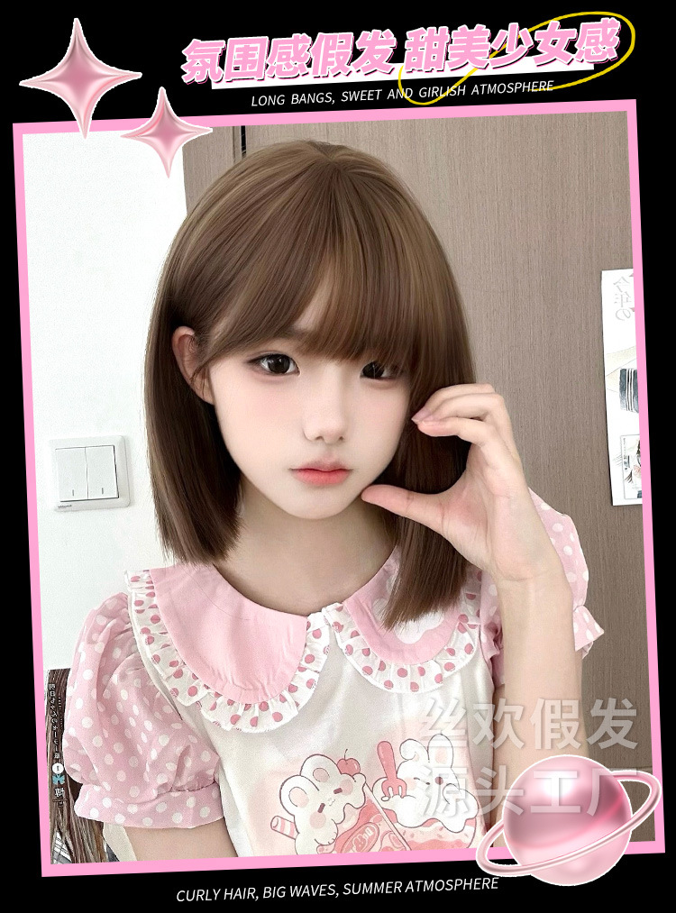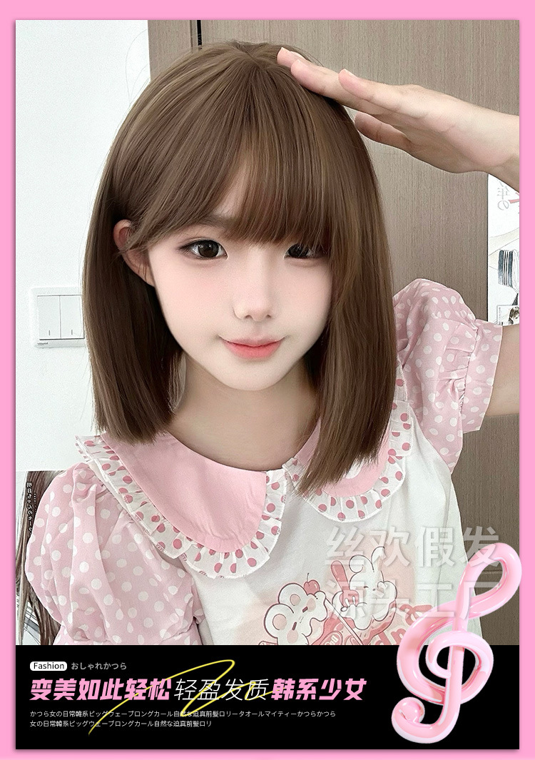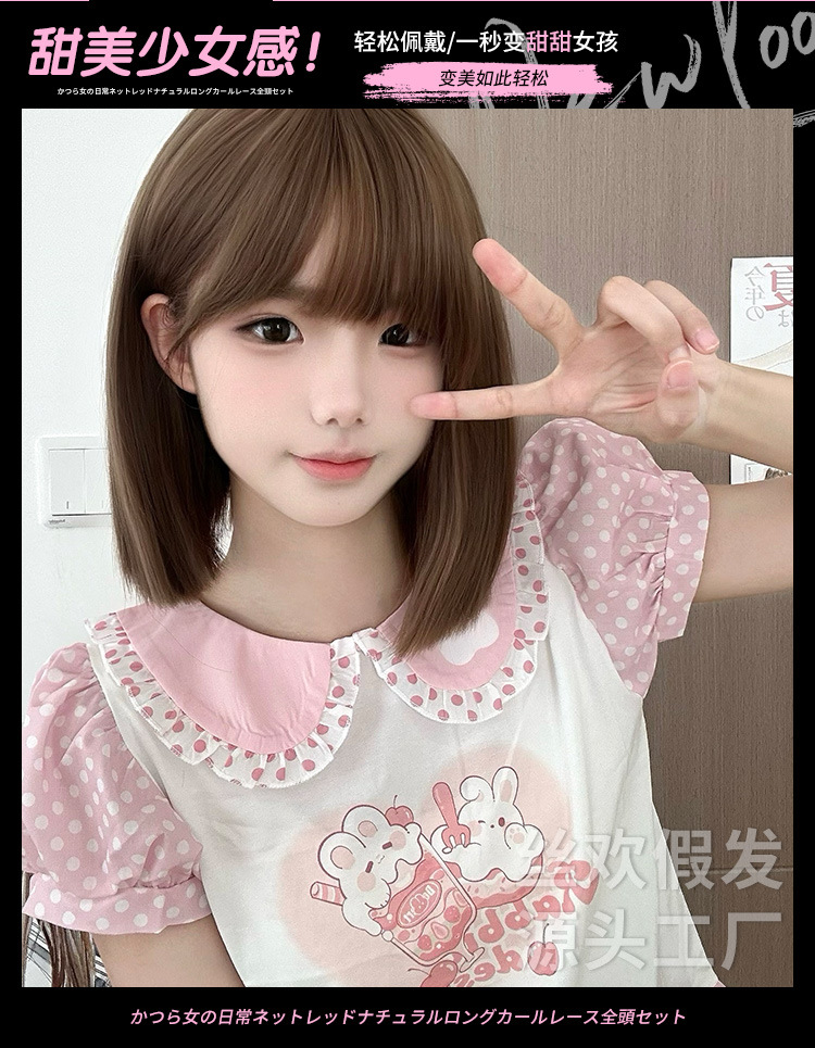 糸歓クロスボーダーかつら女性日常ショートヘアネット赤新作lolita自然にリアルな夏の甘いjk全頭カバー
