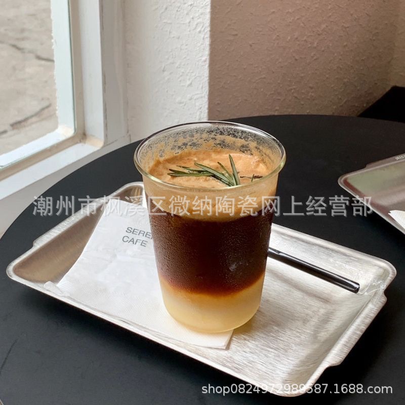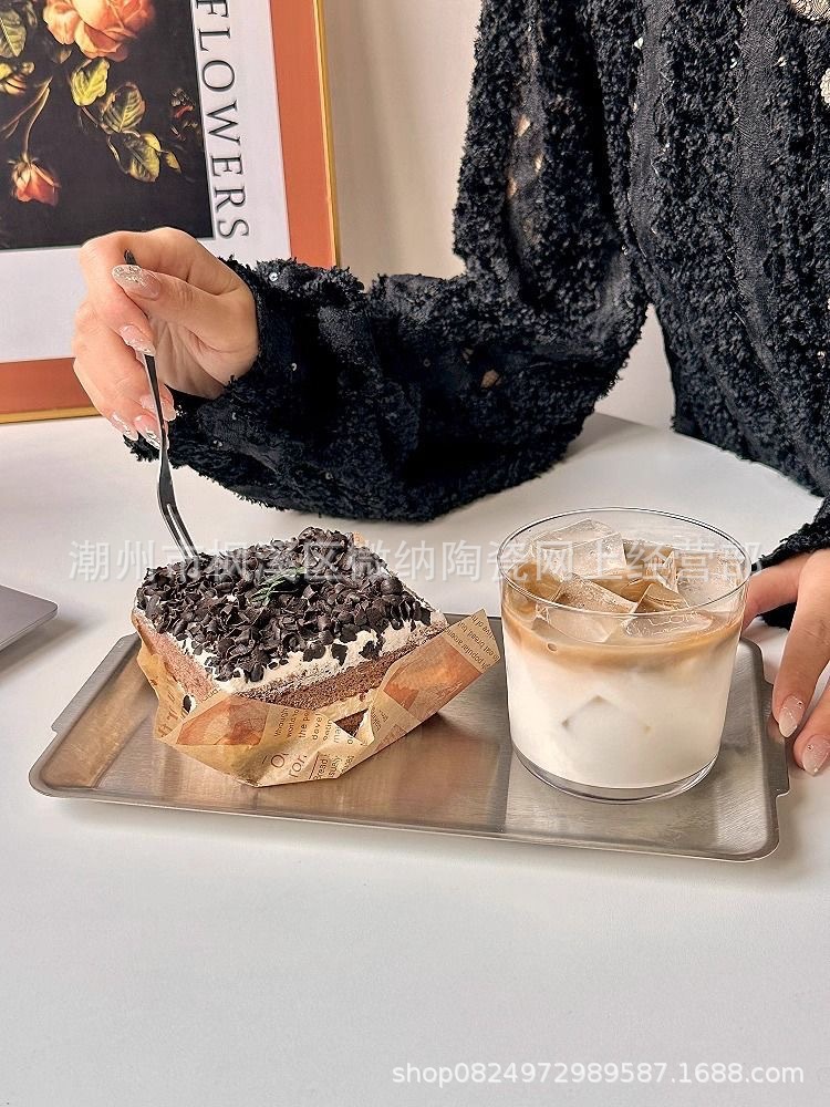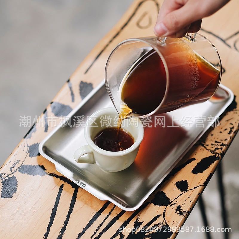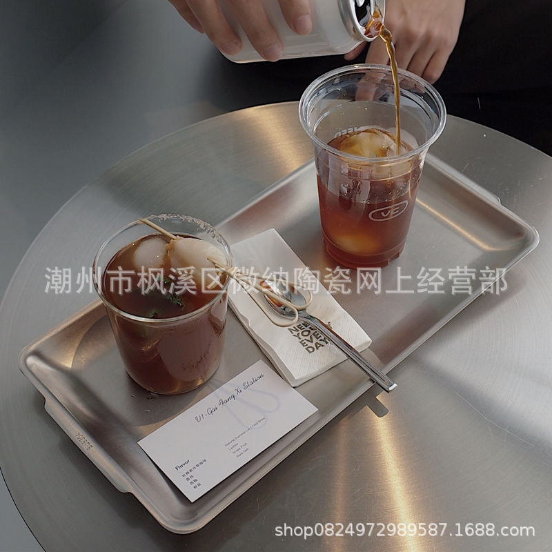 クロスボーダー印刷ロゴ工業風カフェ手沖コーヒートレイ長方形ステンレス茶皿デザート皿
