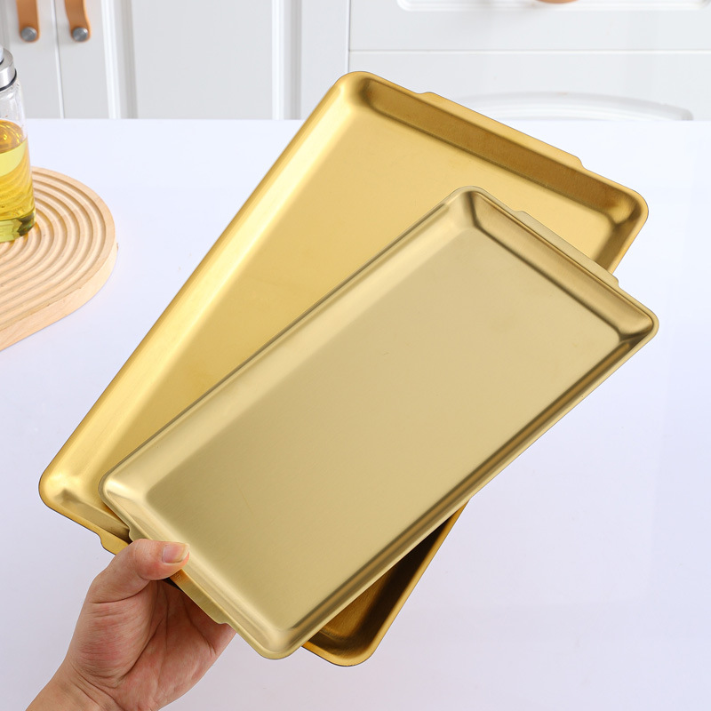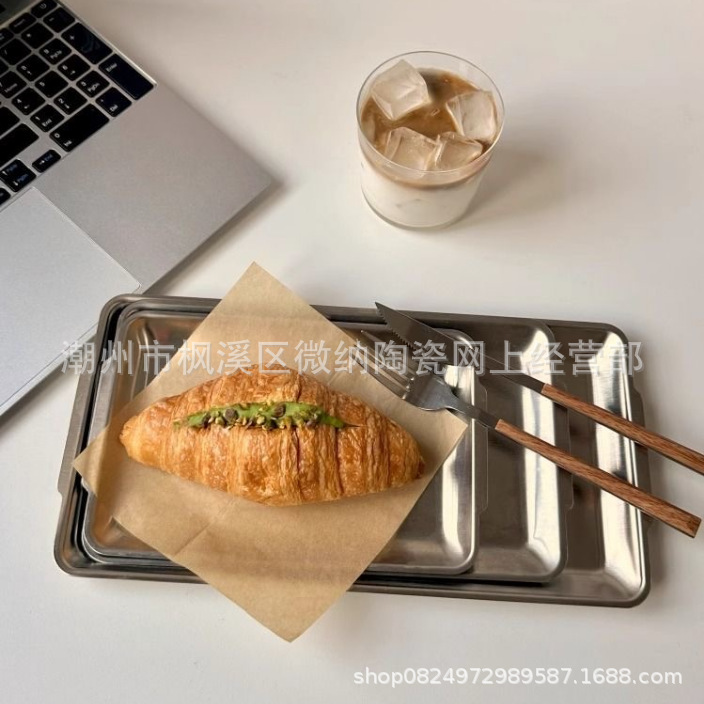 304ステンレストレーカップカップ収納皿長方形寿司皿家庭用果物皿軽贅沢角皿