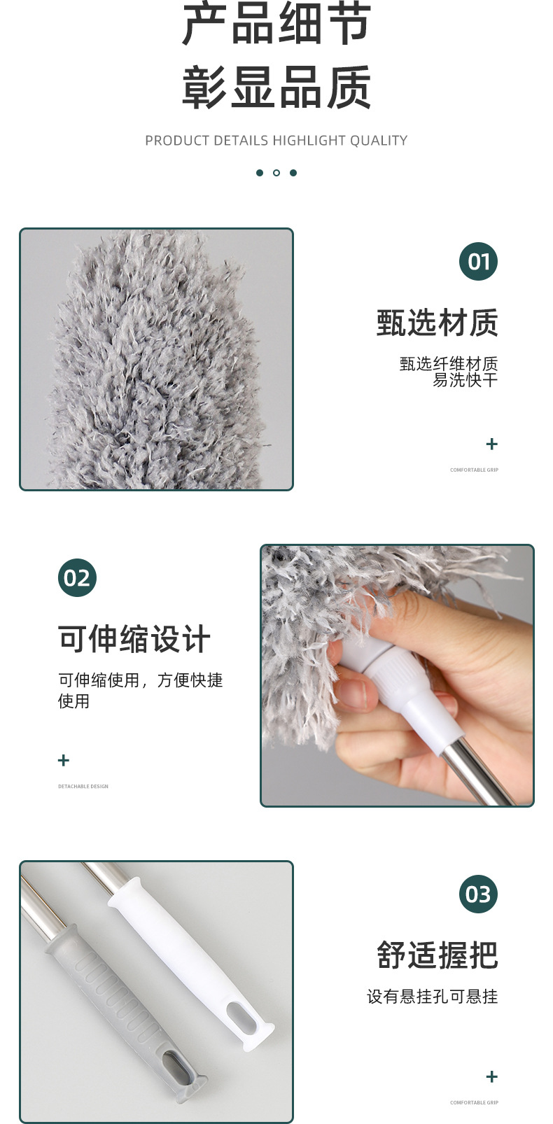 跨境鸡毛掸灰尘掸除尘掸家用车用不易掉毛家务清洁打扫禅子可伸缩