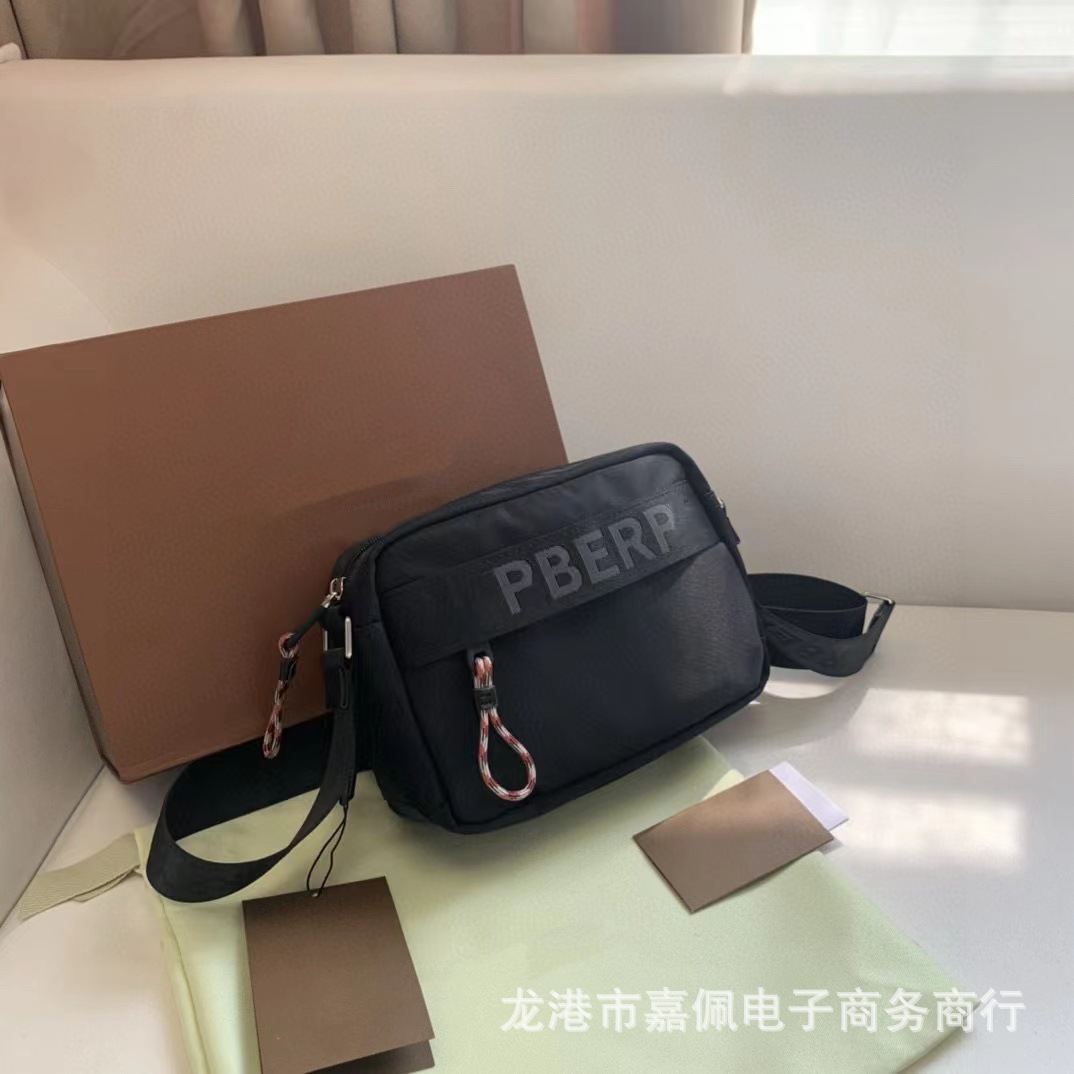 ソリッドカラーのシンプルなナイロンクロスボディキャンバスカメラバッグ、ファッショナブルで多用途な黒の刺繍入りチェストバッグ、男性と女性用、幅広ショルダーストラップ