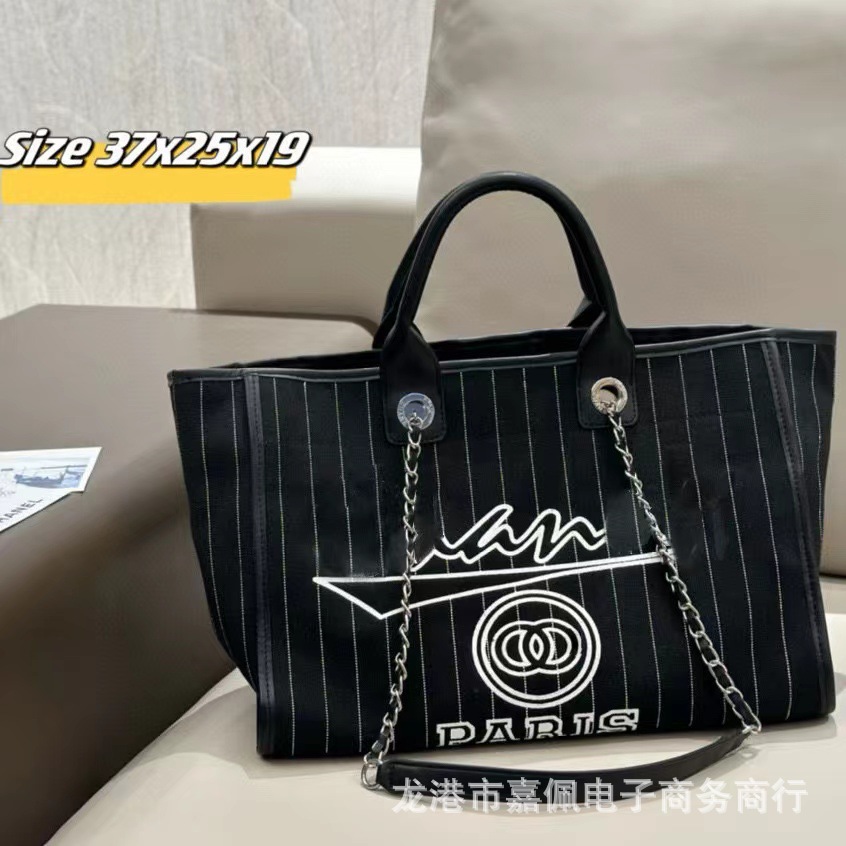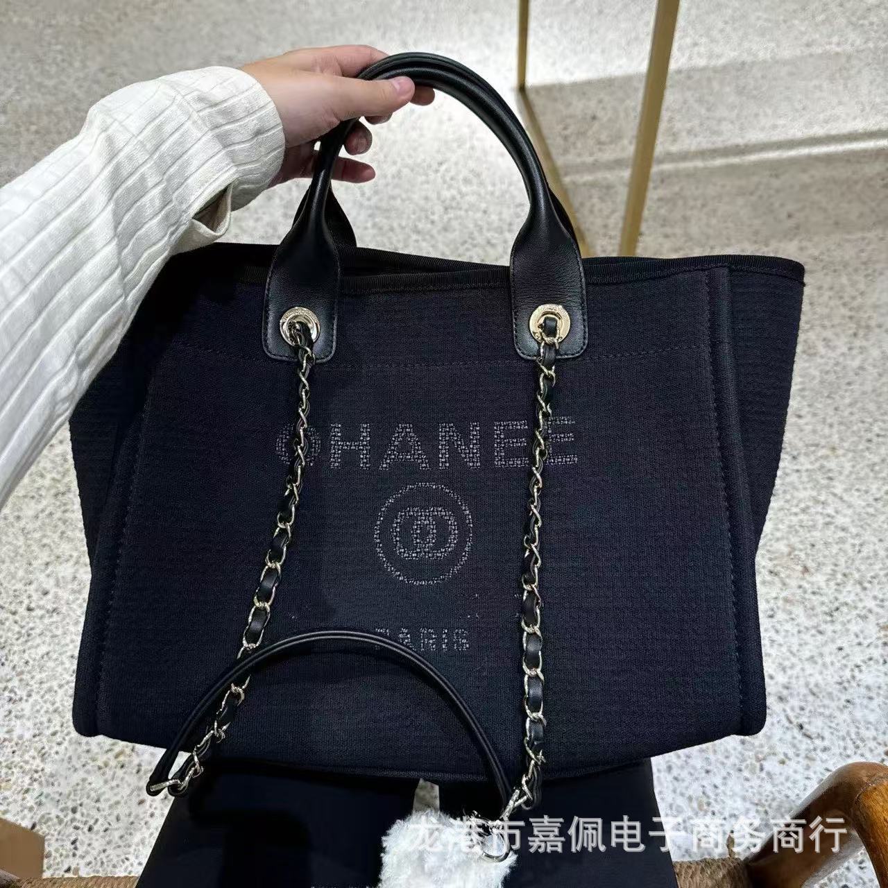 跨境高版本高级黑色24c手提帆布沙滩包链条大容量子母包女包