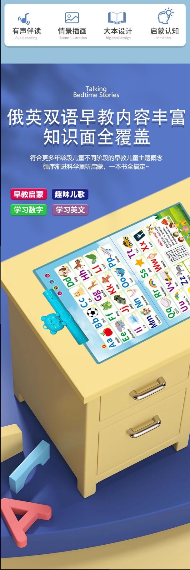 英語の読み聞かせ音声ブック、英語の音声壁掛けチャート、指で読み聞かせるブック、幼児向け知育電子書籍、知育啓発