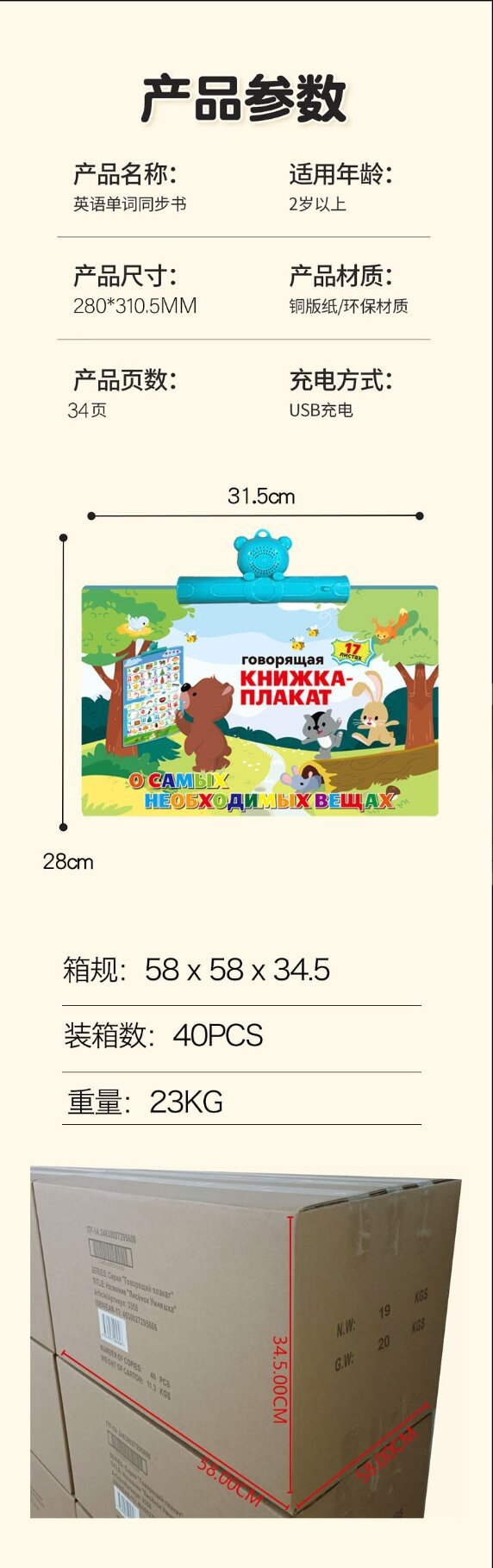 跨境俄语有声书儿童早教启蒙益智手指点读发声书趣味互动故事书