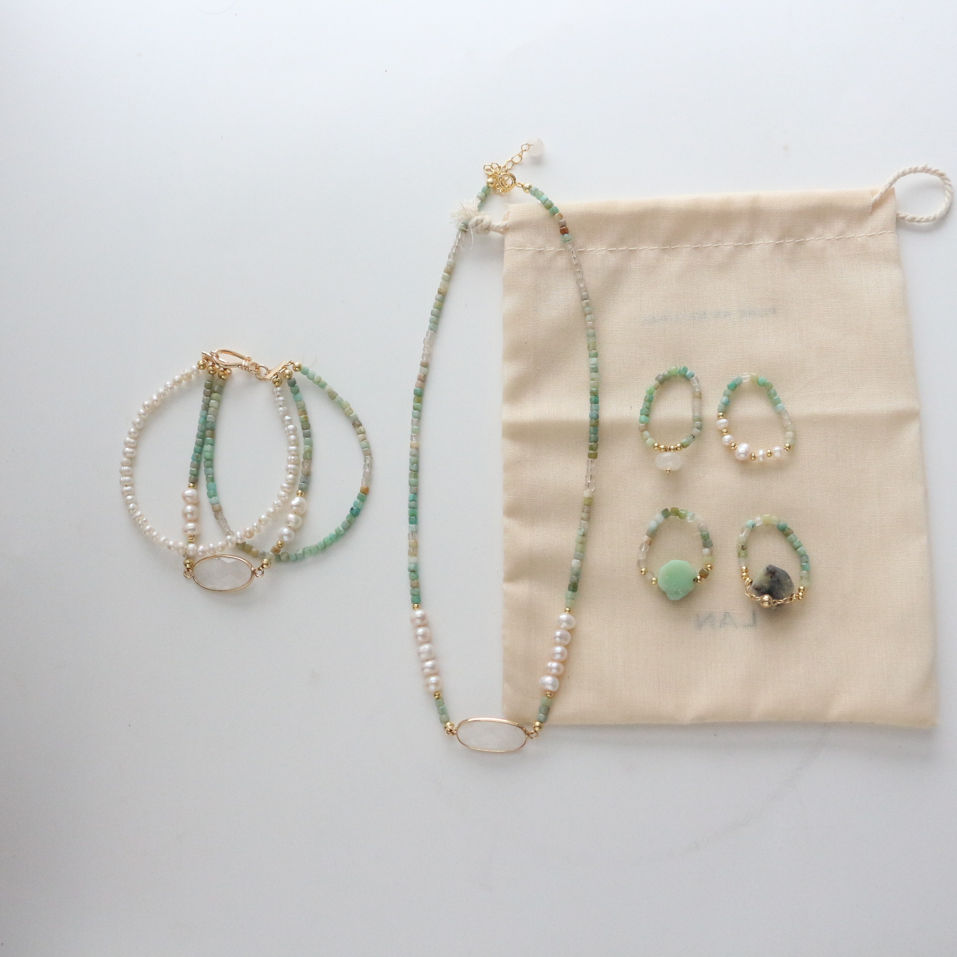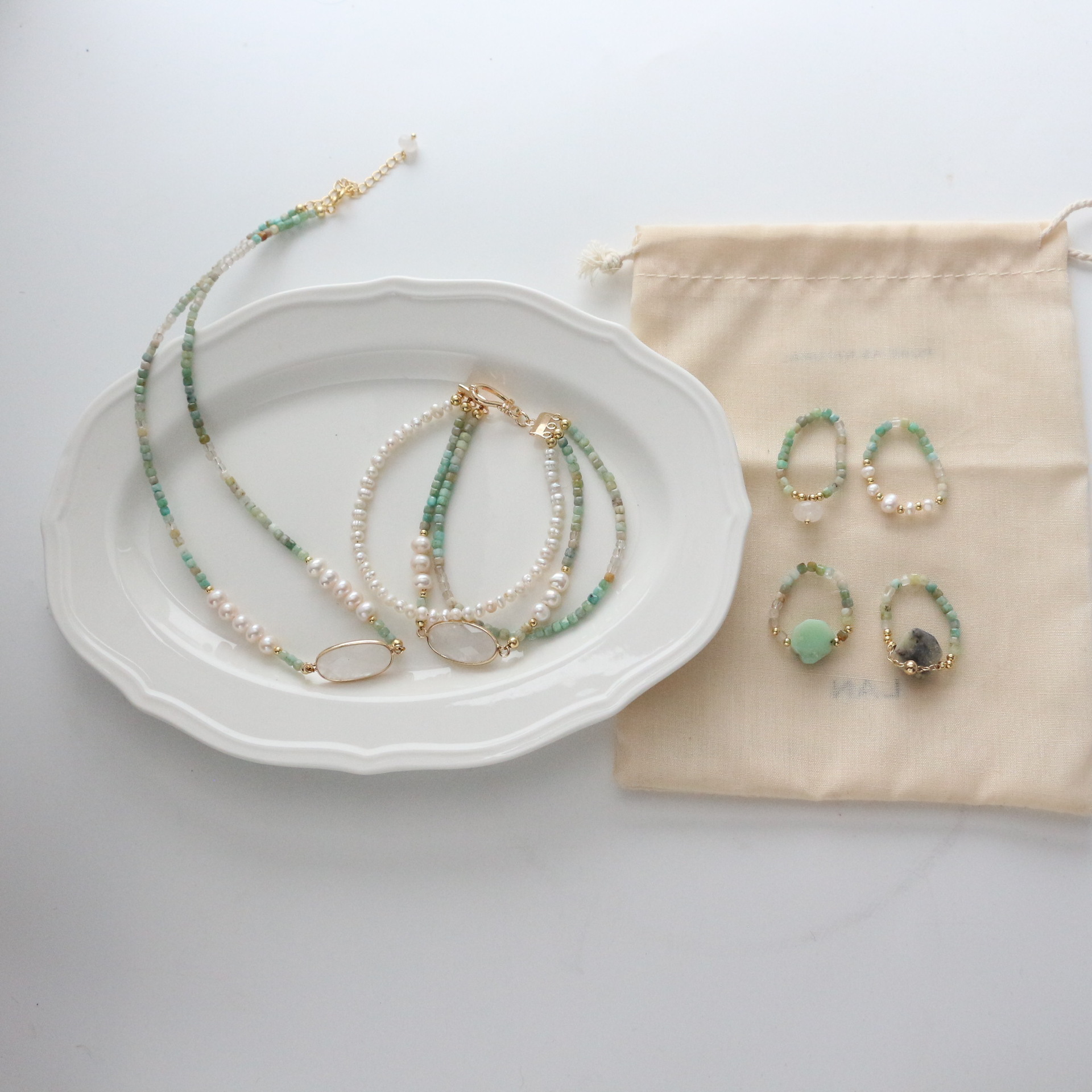 ネット赤緑松セーターチェーン手作ビーズピアスブレスレットオリジナルデザイン指輪セットシリーズ