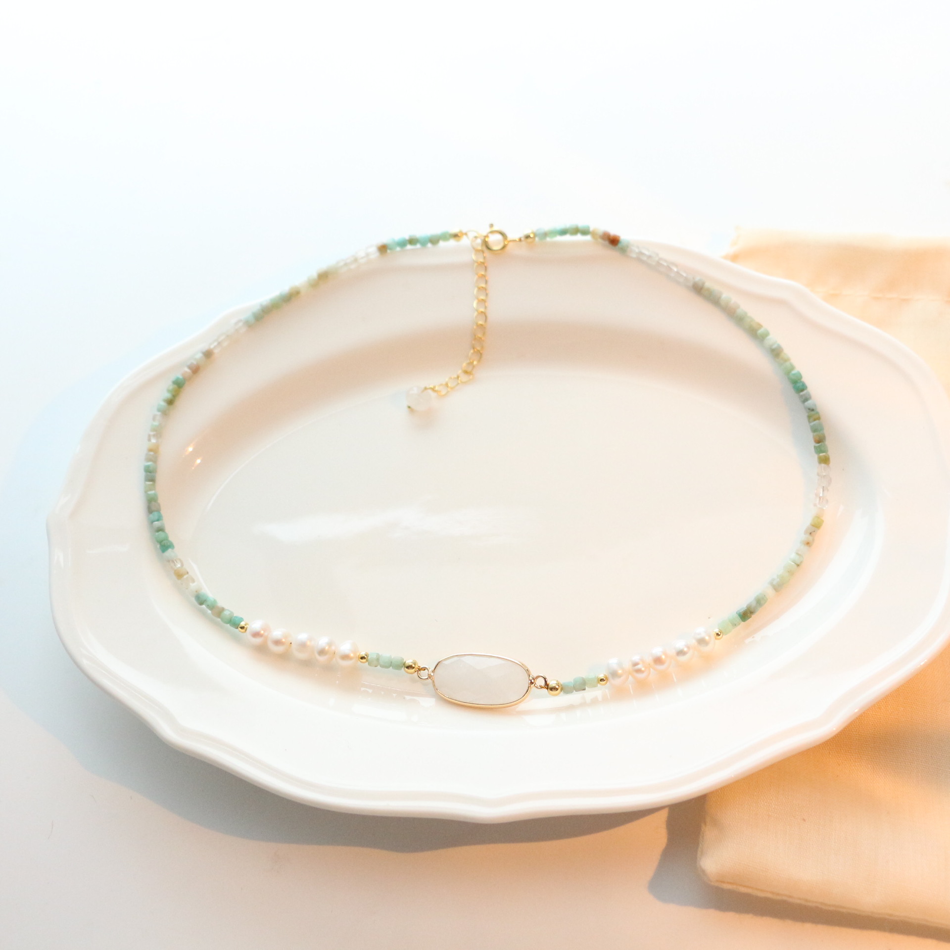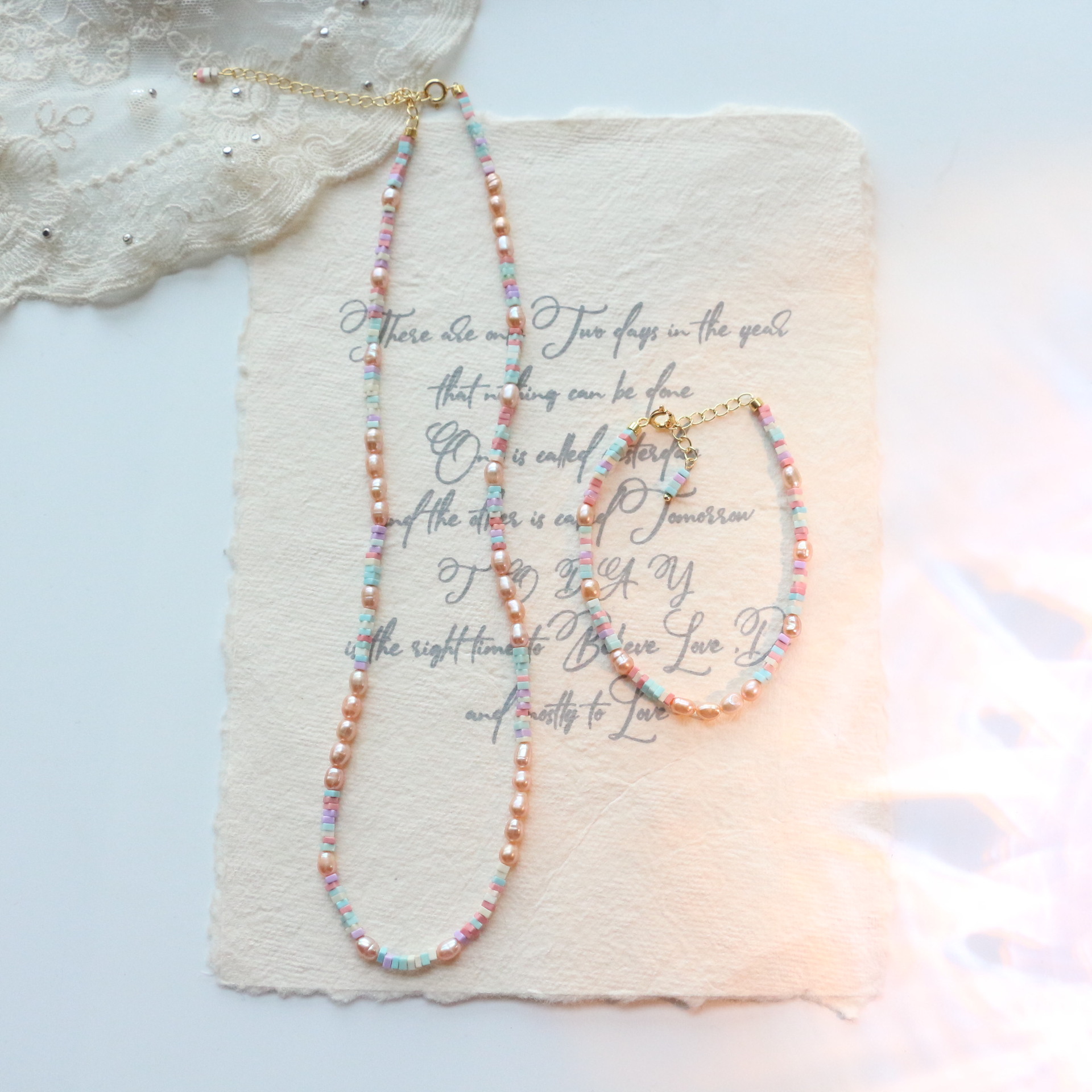 天然石天然真珠浅糖果色手作りビーズネックレスブレスレット小衆シンプルデザイン女子アクセサリー