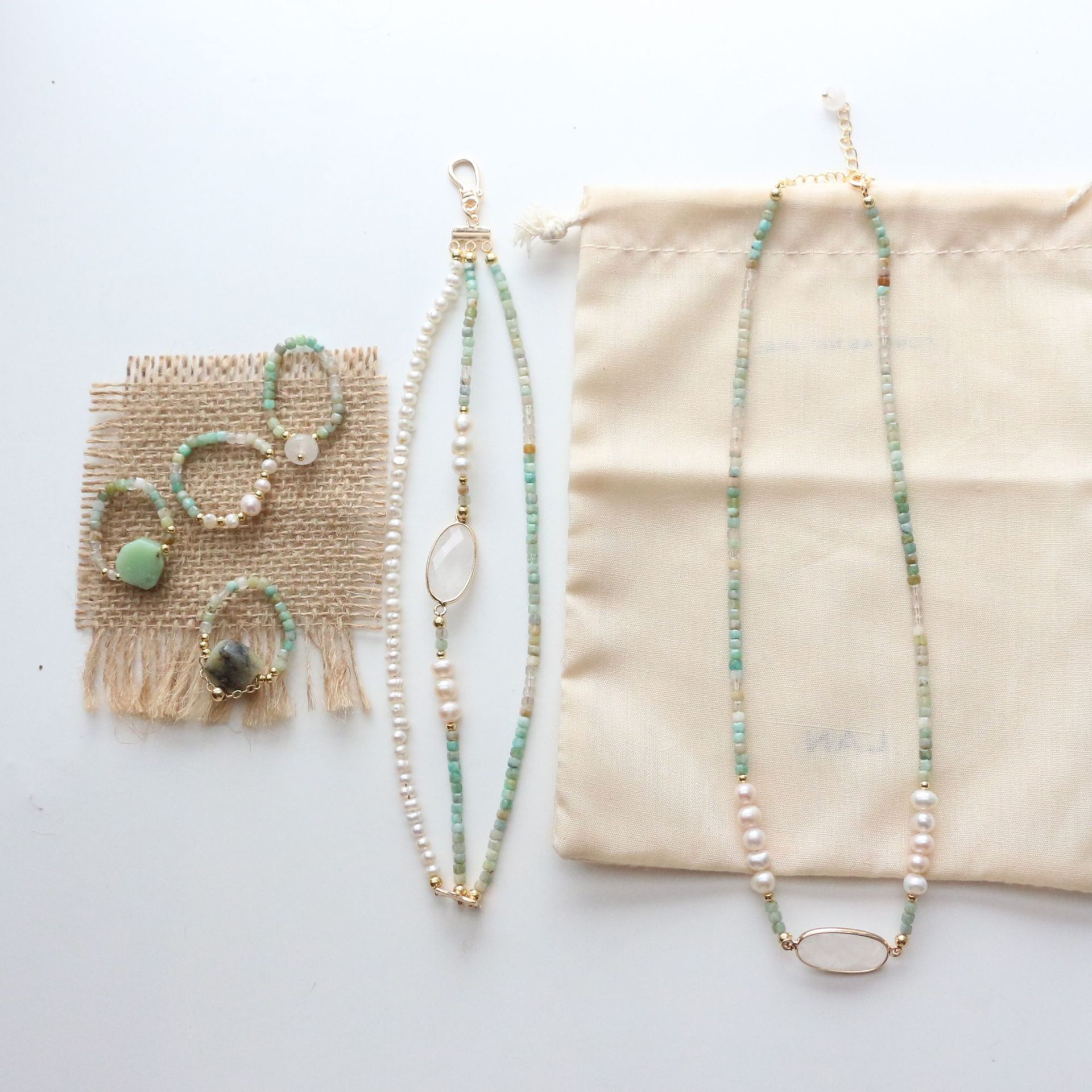 グラデーショングリーン天河石デザイン感三層ブレスレット高品質淡水真珠ネックレス鎖骨鎖指輪合集