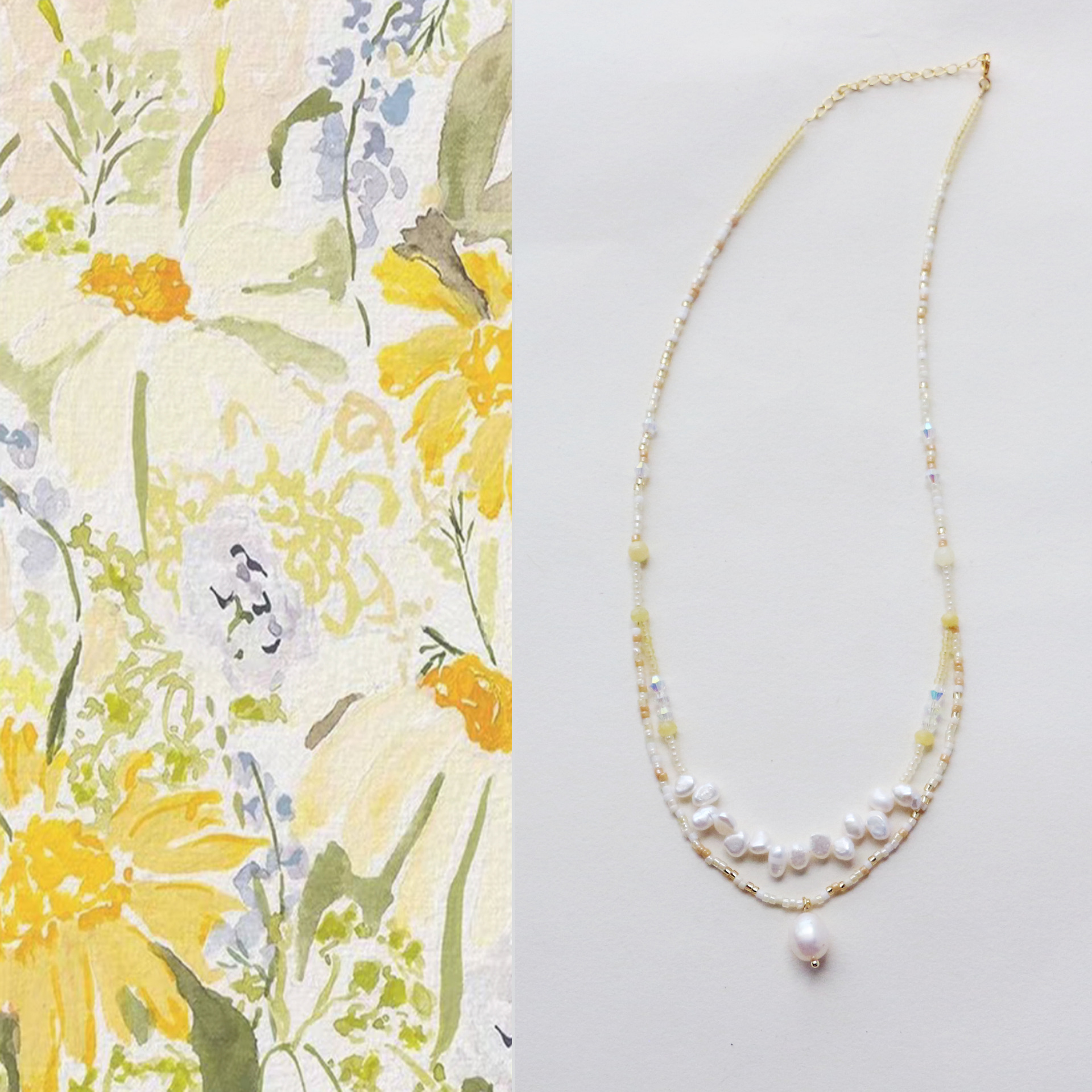新中式国风项链小众鹅黄色米珠巴洛克珍珠项链