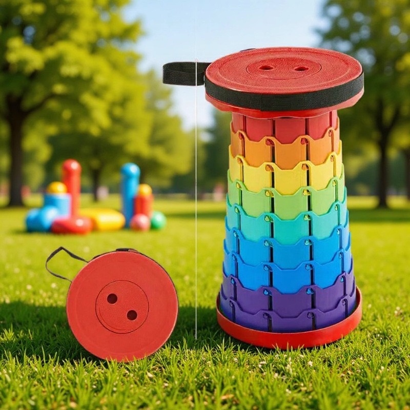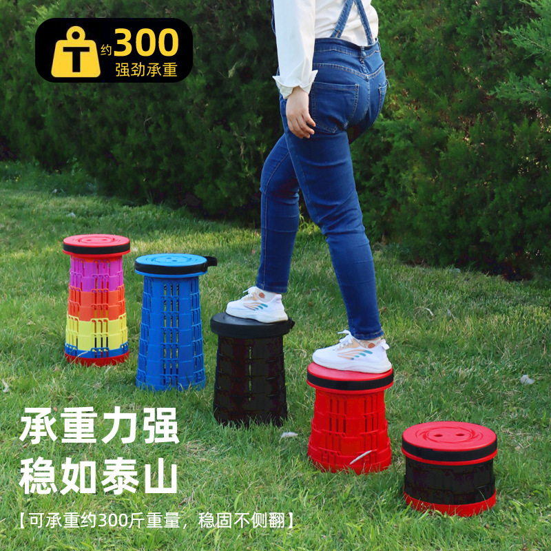 户外钓鱼露营便携折叠凳旅行塑料伸缩家用收纳省空间彩虹圆凳批发