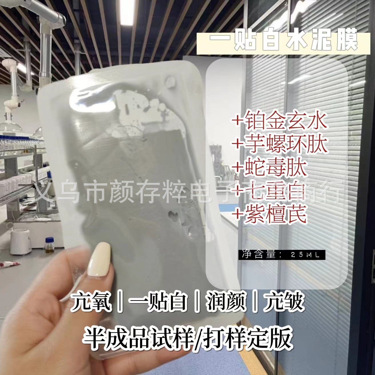 白セメントのプラチナマスクを貼り、蛇毒ペプチドのサトイモ環ペプチドのマスクを貼ります。