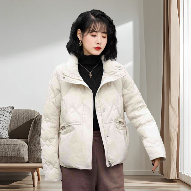 跨境TikTok轻薄羽绒服女短款新款韩版时尚宽松白鸭绒小个子百搭