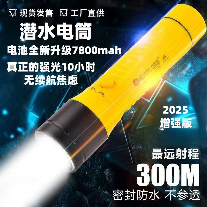 L2 ホワイトライトイエローライトグレアダイビング懐中電灯防水充電式ロングビームライトダイビング懐中電灯 80m