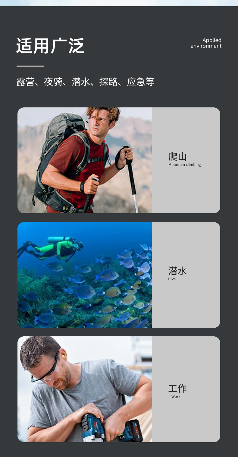 適用環境 ハイキング,キャンプ,教える,検索する,毎日の持ち運び,ナイトライディング,洞窟探検,夜釣り,パトロール,19022027760