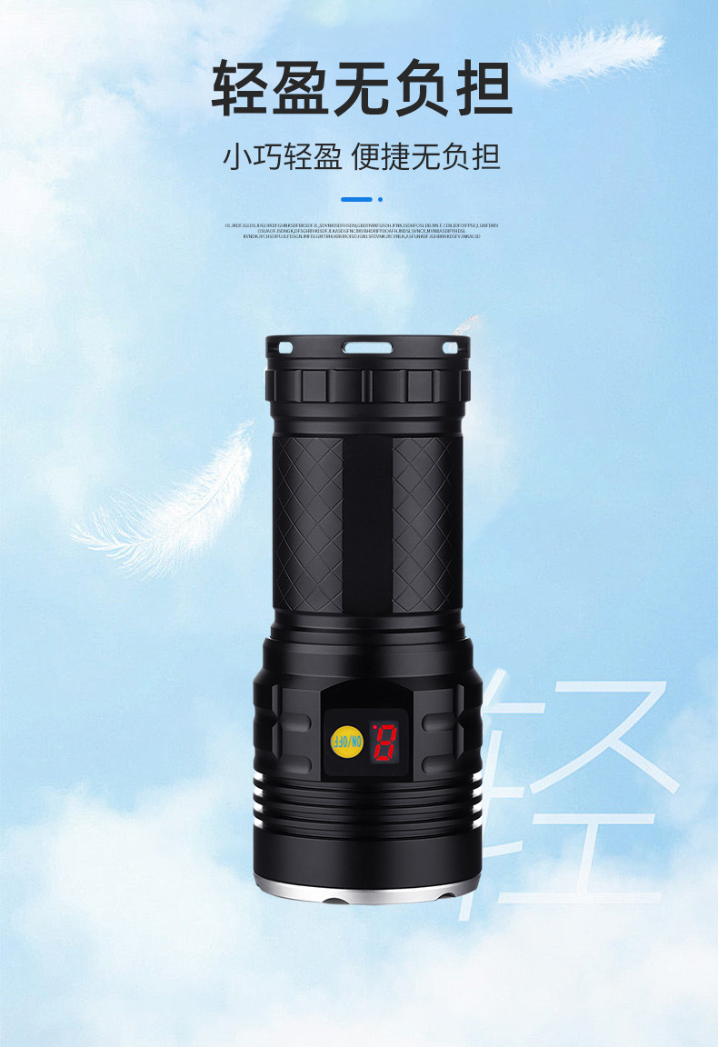 多機能直充式屋外小型防水懐中電灯 ミニ防水懐中電灯 インテリジェントデジタルディスプレイ小型強力懐中電灯