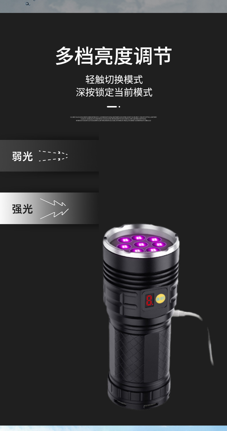 240W大功率UV紫外线手电365nm紫光灯探伤油污荧光剂检测黑光灯