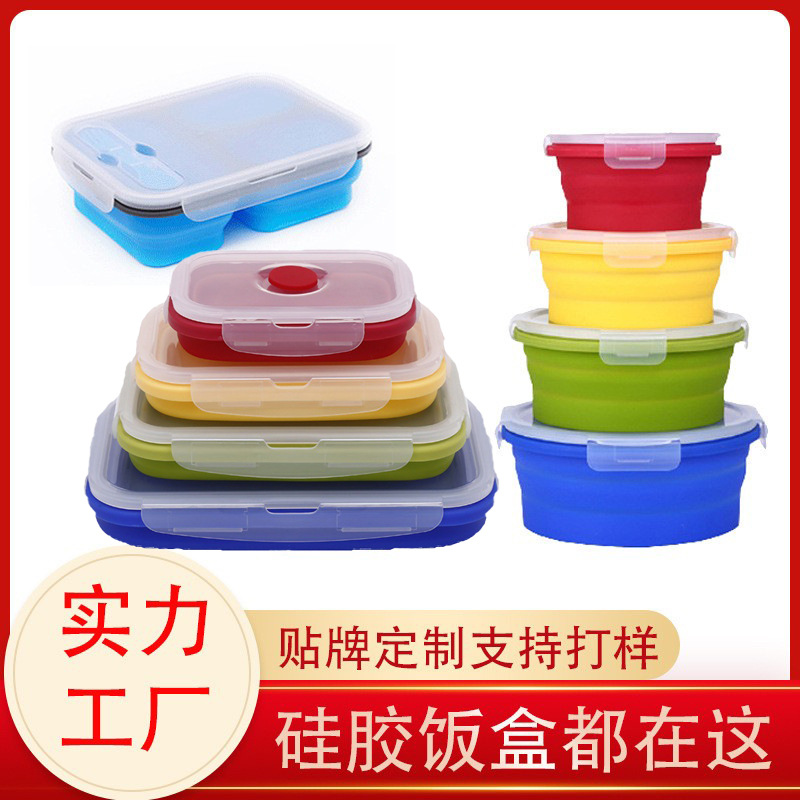 シリカゲル折り畳み弁当箱角形円形食品級電子レンジピクニック弁当箱冷蔵庫収納箱新鮮保持箱