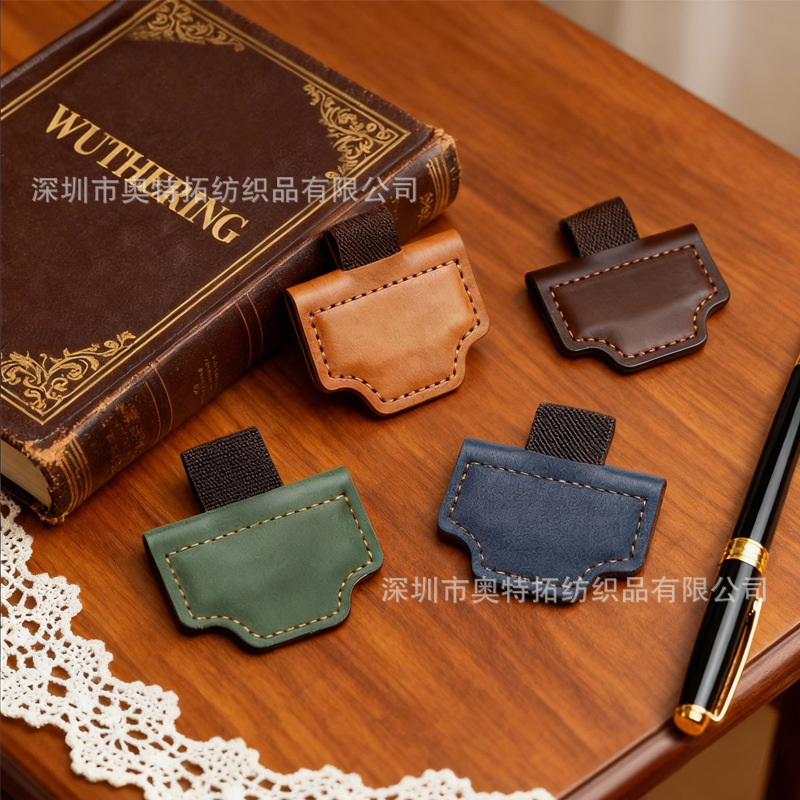 跨境pu复古皮革磁性书夹书签笔夹磁吸皮革笔夹书签可激光雕刻