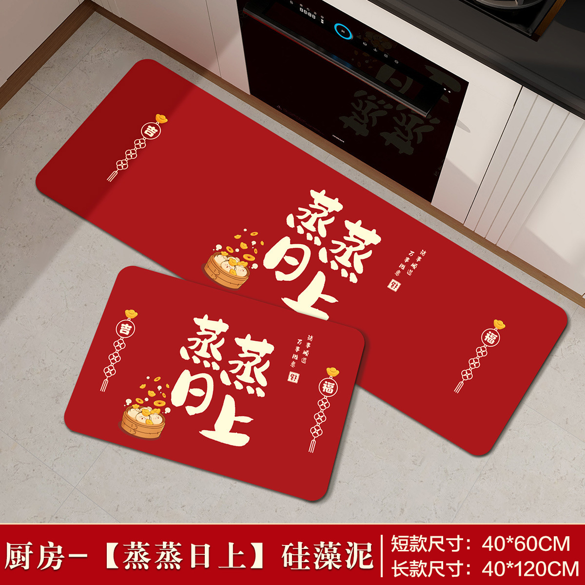 红色喜庆厨房硅藻泥地垫乔迁之喜新居进宅长条垫厨房吸水防滑脚垫