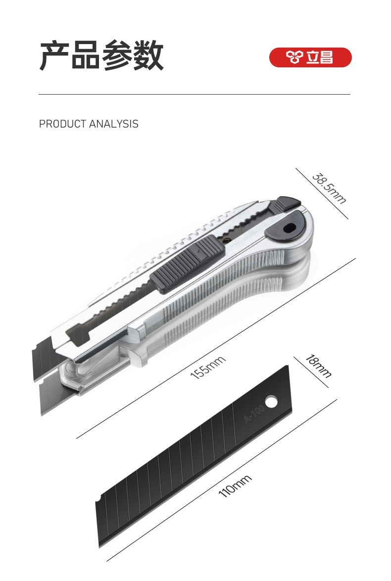 卸売大型万能ナイフ18mm、宅配便開封用ナイフ、アルミ合金製ペーパーカッター、鋭利な切断刃、大型万能ナイフ