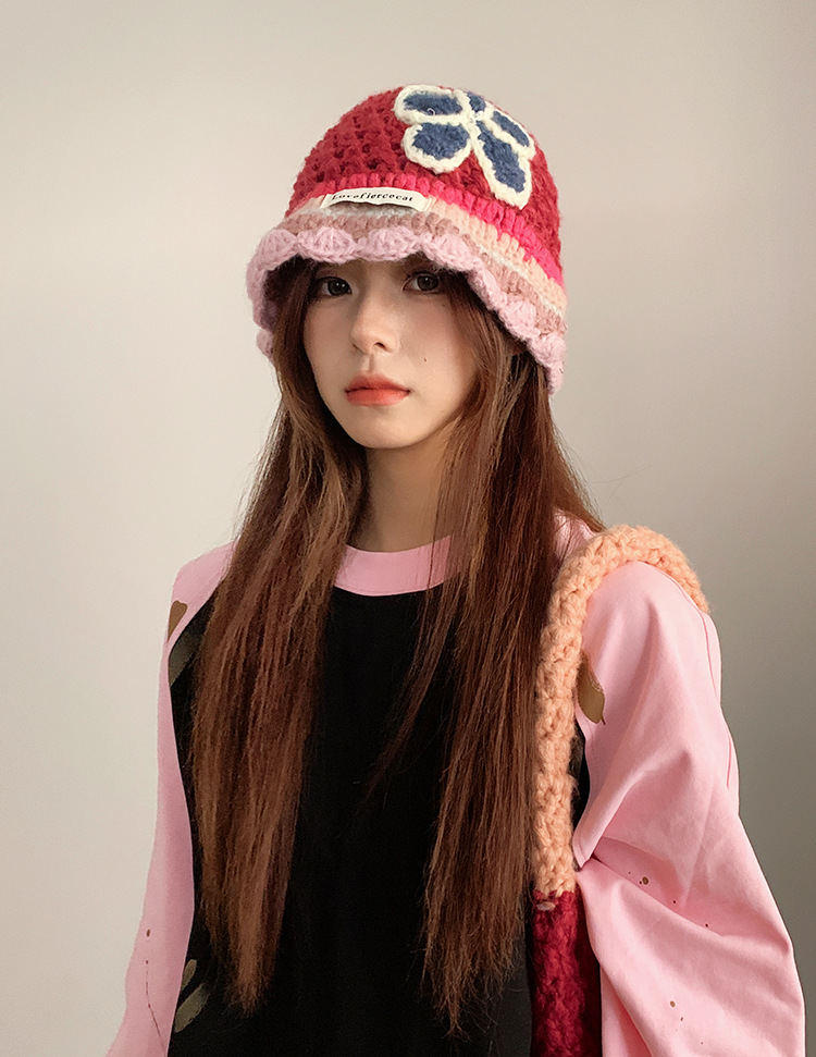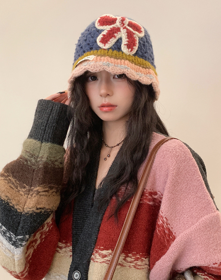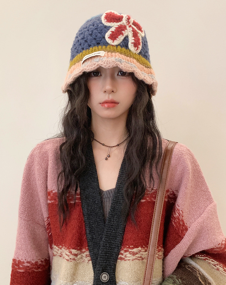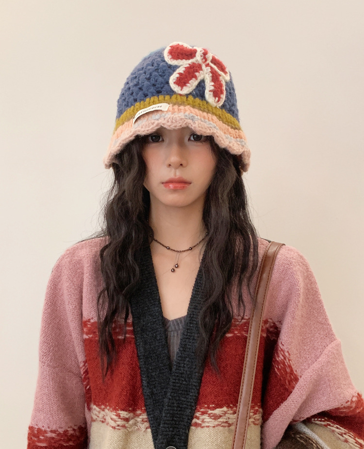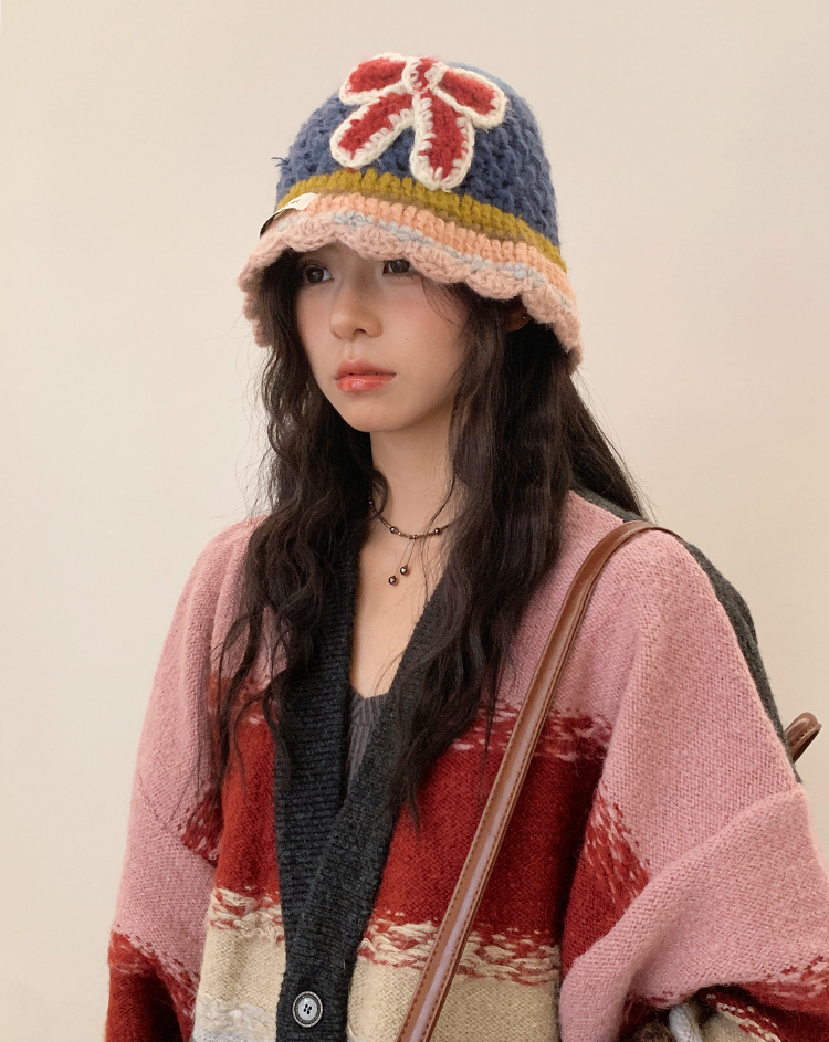 レースの鉢の帽子は甘くて、色のストライプのデザイン感にぶつかります。