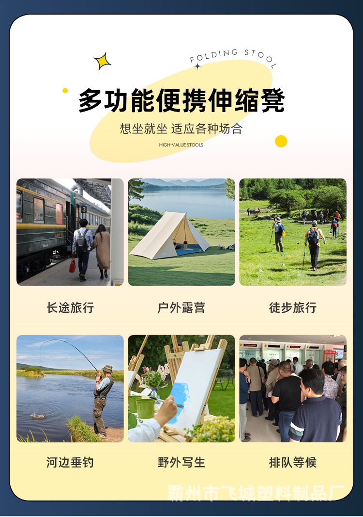 折叠伸缩凳网红户外便携收纳不占空间可调节伸缩凳折叠凳旅游钓鱼
