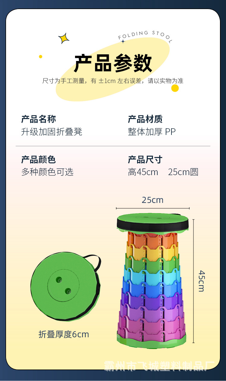 彩虹折叠凳折叠小凳子加厚旅行袖珍无座可坐户外室内折叠伸缩凳