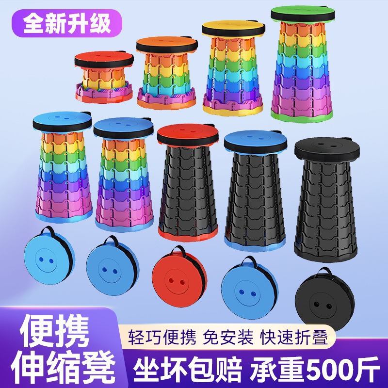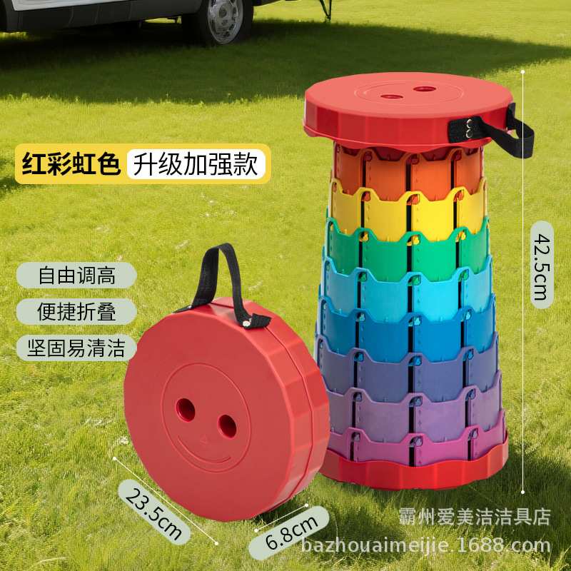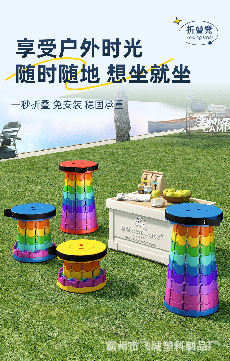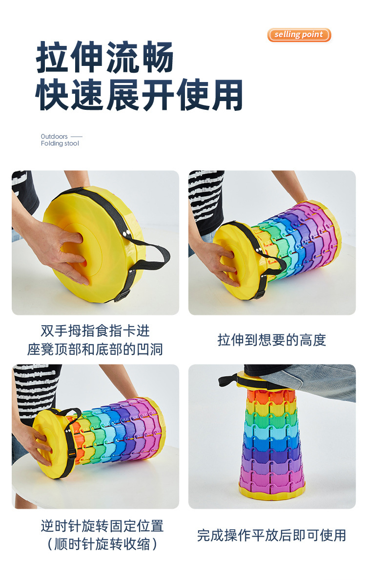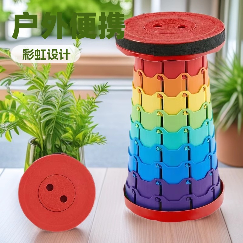 户外折叠伸缩凳便携式彩虹凳子家用旅行马扎塑料椅子加厚升降钓椅