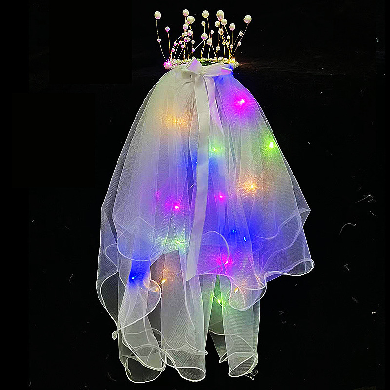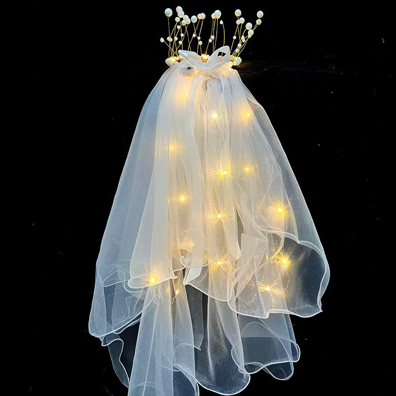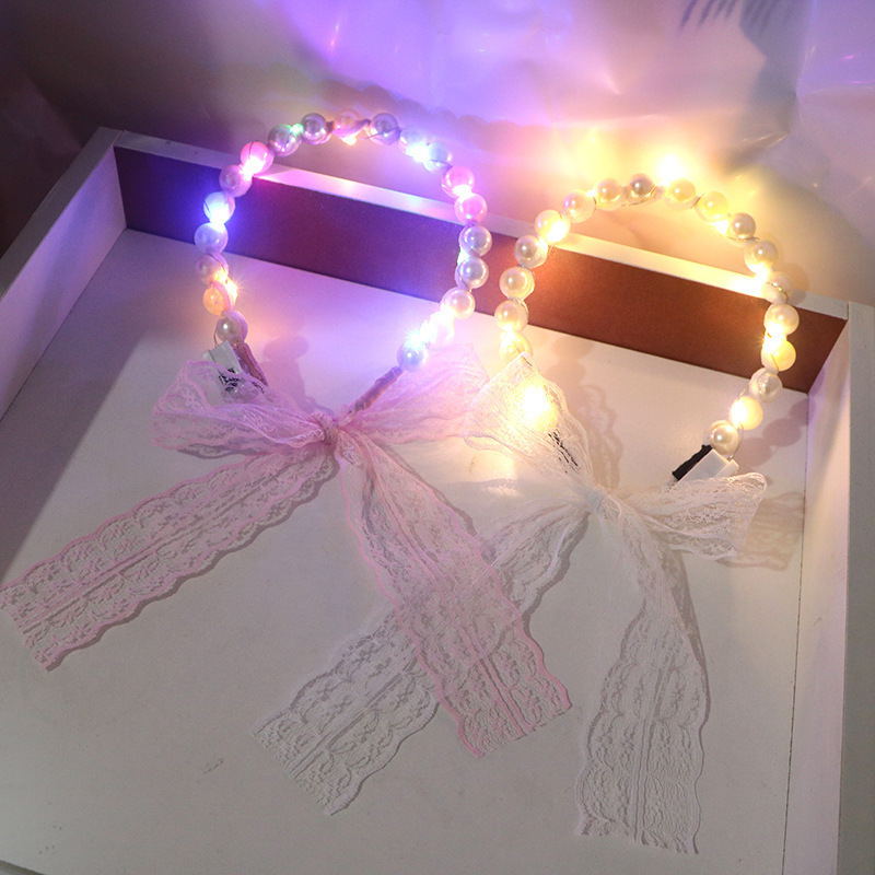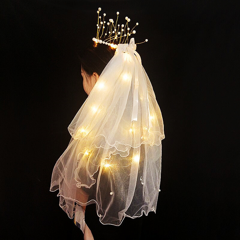 ネット有名人人気の光るヘアベール、子供と大人向けのおもちゃ、二重リボンの蝶結び、ライト付き、光る妖精ヘアアクセサリー