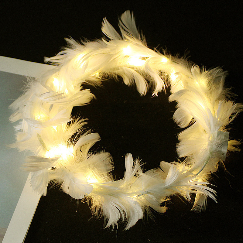 新款发光鹅毛花环羽毛天使闪光头饰网红夜市地推扫码小礼品广场