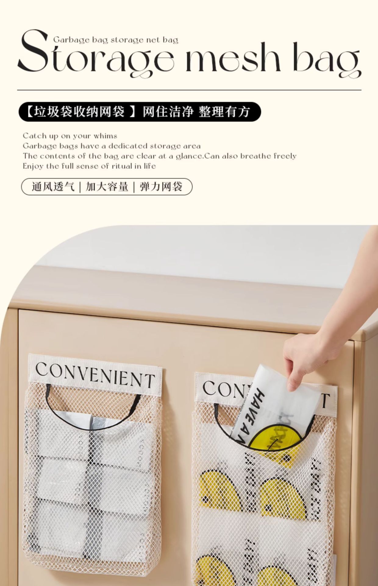 キッチンゴミ袋収納アーティファクト壁掛け大容量袋ビニール袋収納メッシュバッグ多機能キャビネットドア