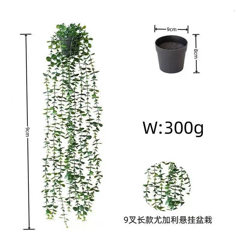 跨境悬挂人造仿真绿植尤加利曼陀罗豌豆荚盆栽藤蔓家居室内装饰